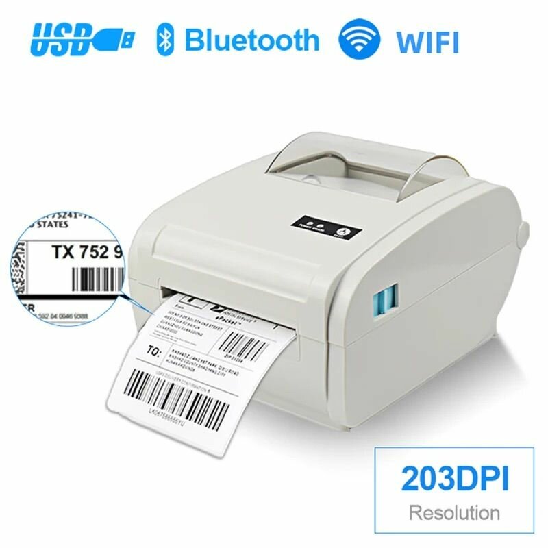 10 цен на Принтер для термопечати 4-дюймовый для экспресс-этикеток со штрих-кодом USB Bluetooth Ширина 40-110 мм / Принтер накладных