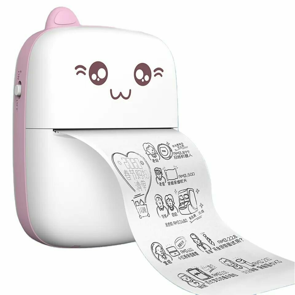 Мини-принтер розовый/ черно-белый принтер/ печатать этикеток информация: