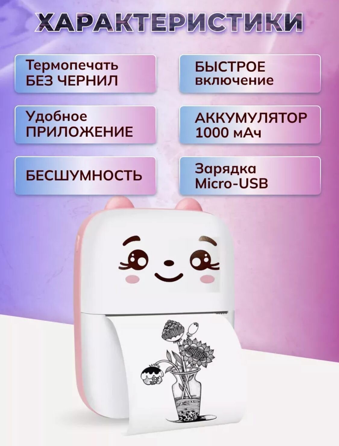 Мини принтер портативный для фотографий, этикеток, чеков, наклеек