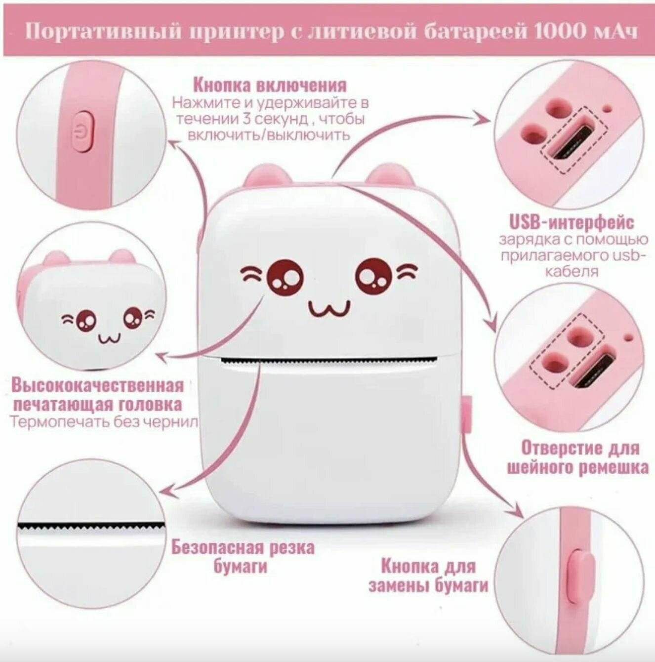 Беспроводной детский портативный мини-термопринтер для телефона / Принтер для наклеек, голубой информация: