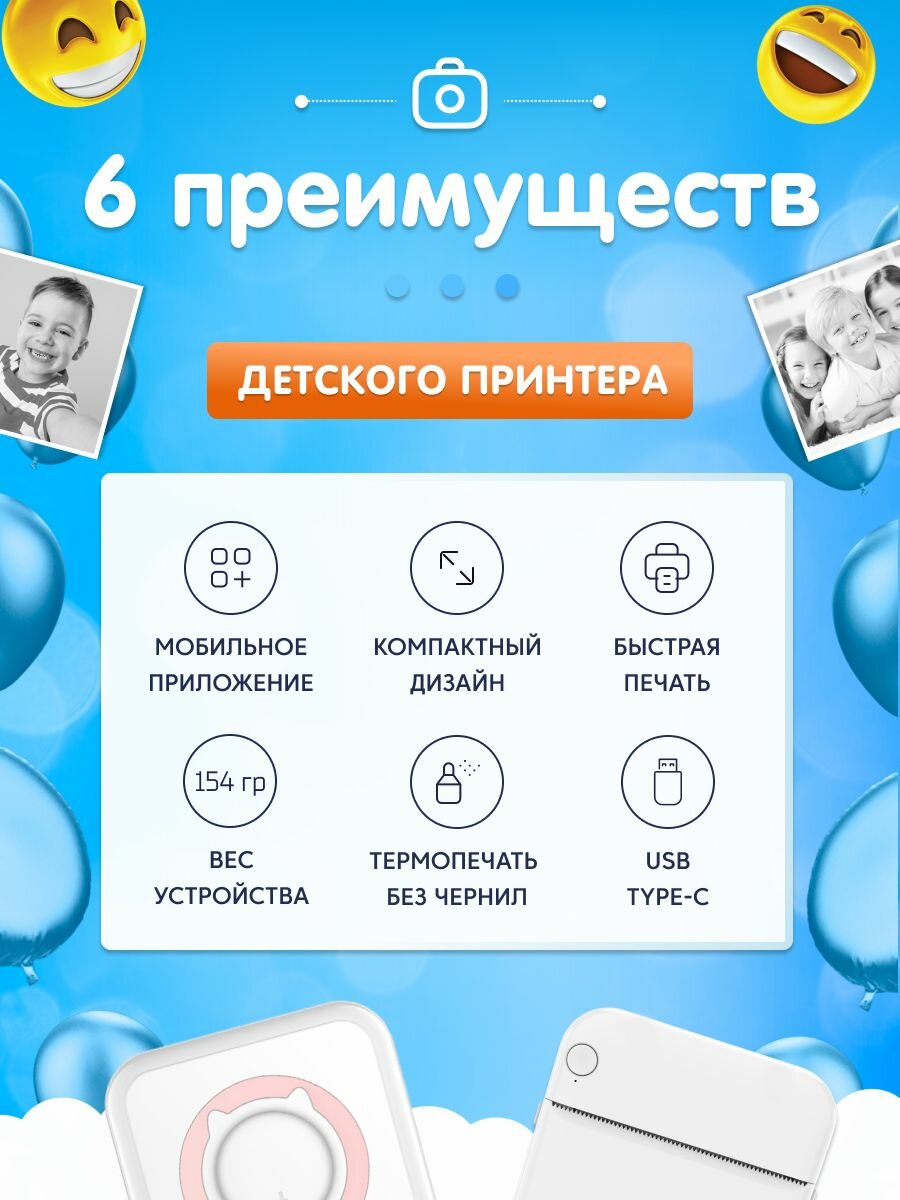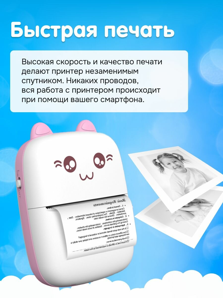 Детский мини-принтер для фотографий Kid Joy, 200DPI, Bluetooth 5.1, APP (C9) White+Pink информация: