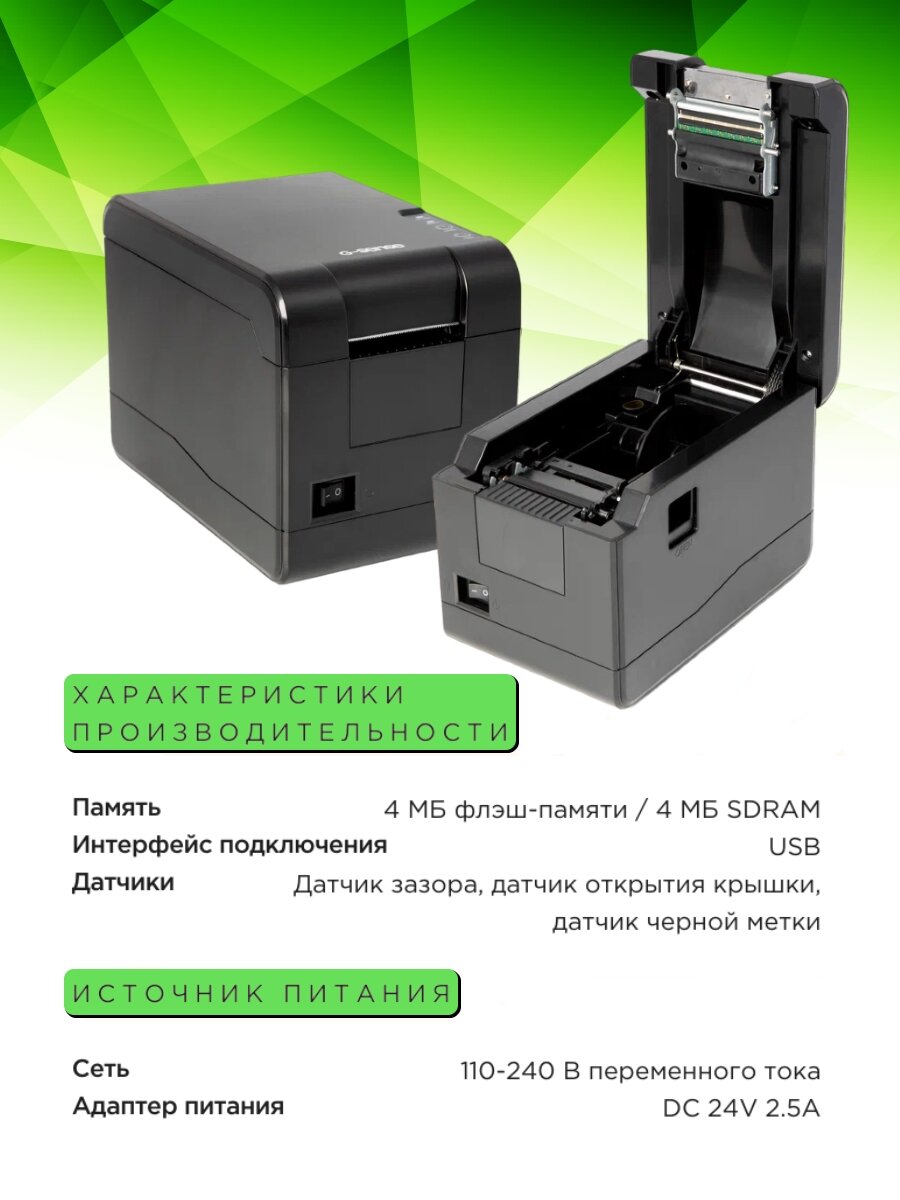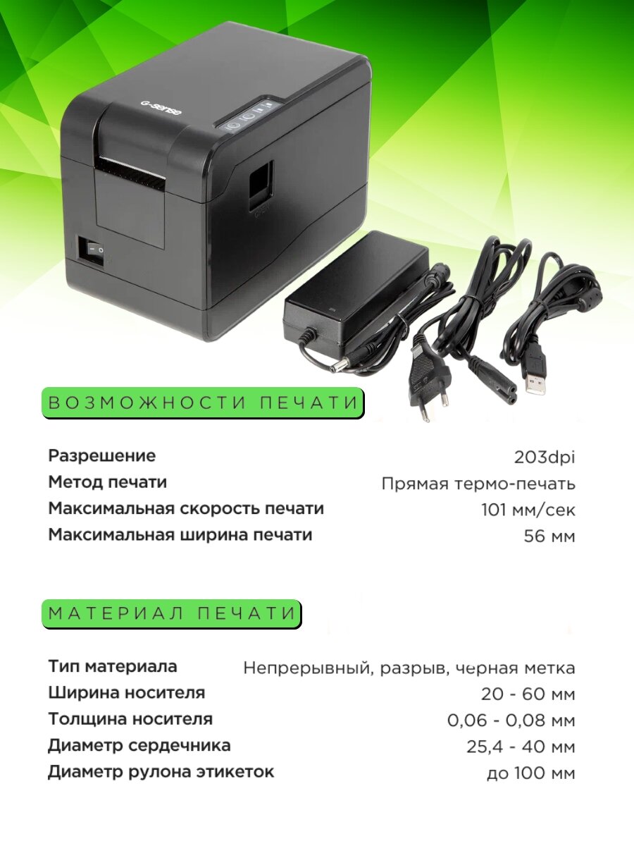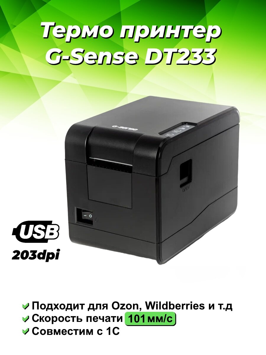 Принтер этикеток G-SENSE DT233 (термо, 203 dpi, 2 inch, USB) информация:
