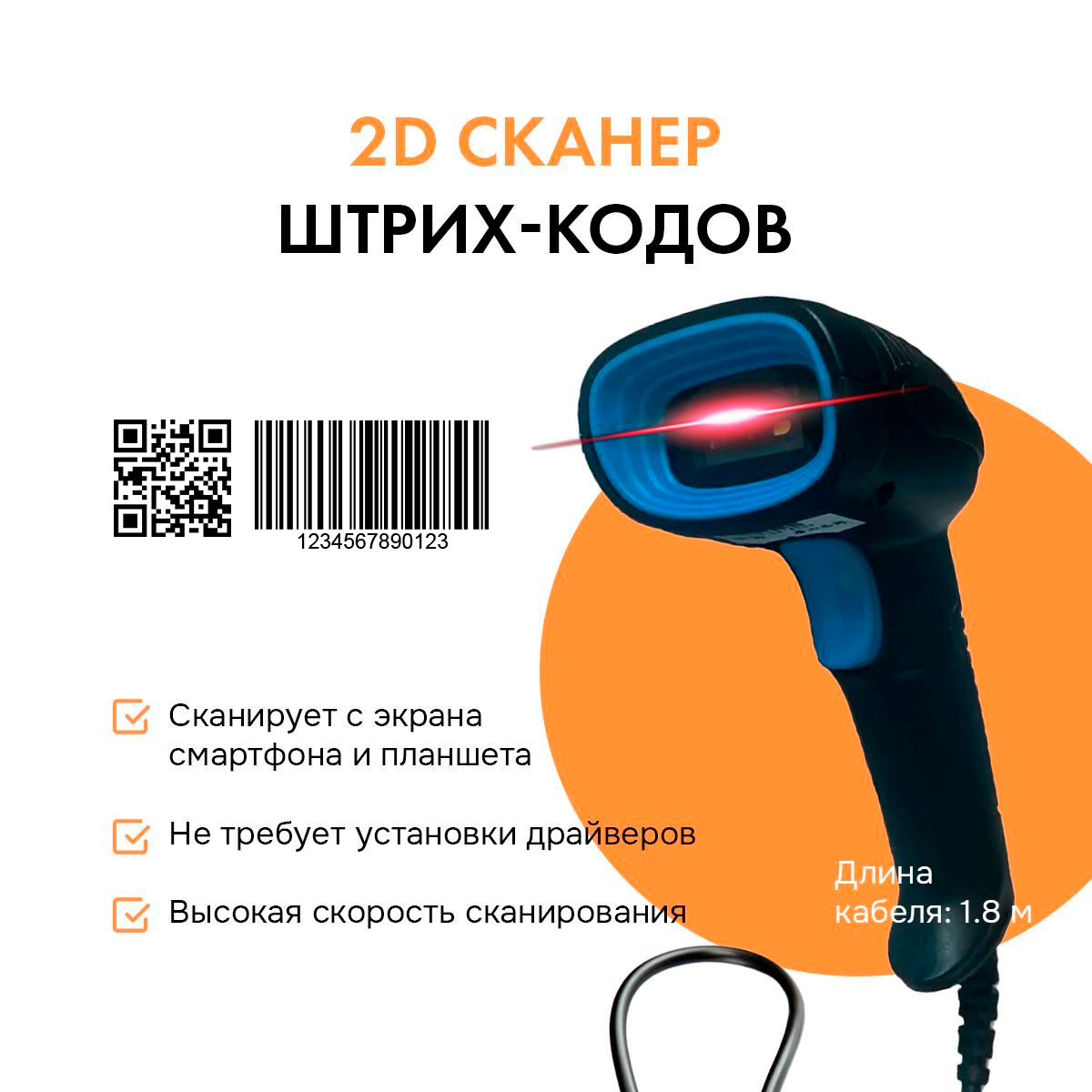 | Комплектация | Сканер штрих-кодов, usb провод, инструкция на русском языке, коробка |