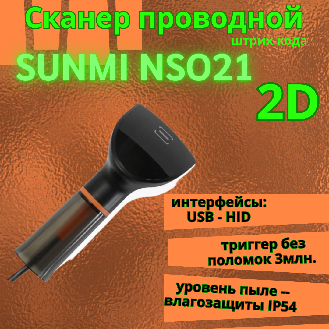 Сканер штрих-кода SUNMI NS021, проводной, для маркировки, ЕГАИС, Честный знак, Эвотор, Атол, Нева , для ПВЗ информация: