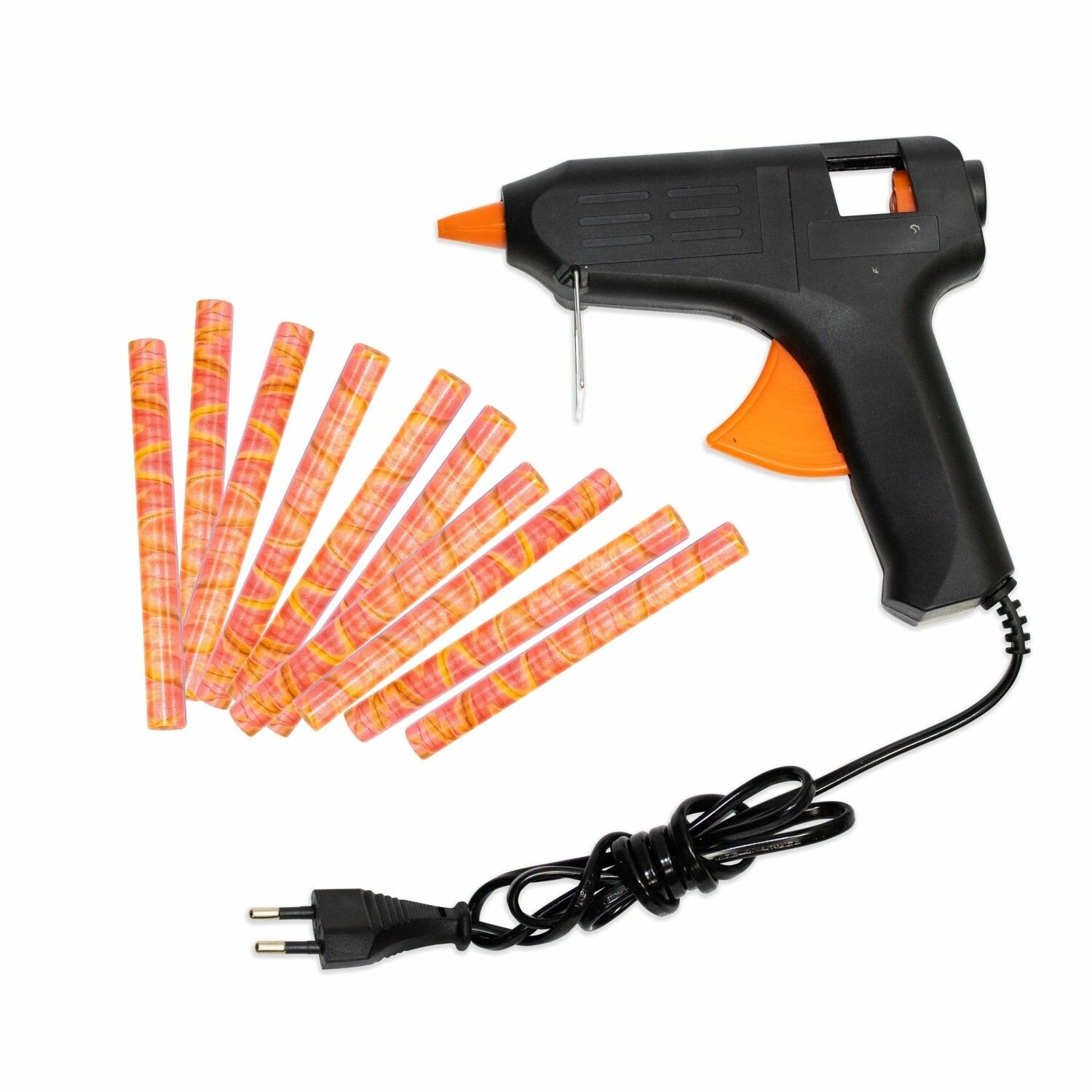 Набор: сургучных стержней (10 штук палочек) цвета "Солнечный микс" и пистолет для плавки сургуча 2 650 ₽