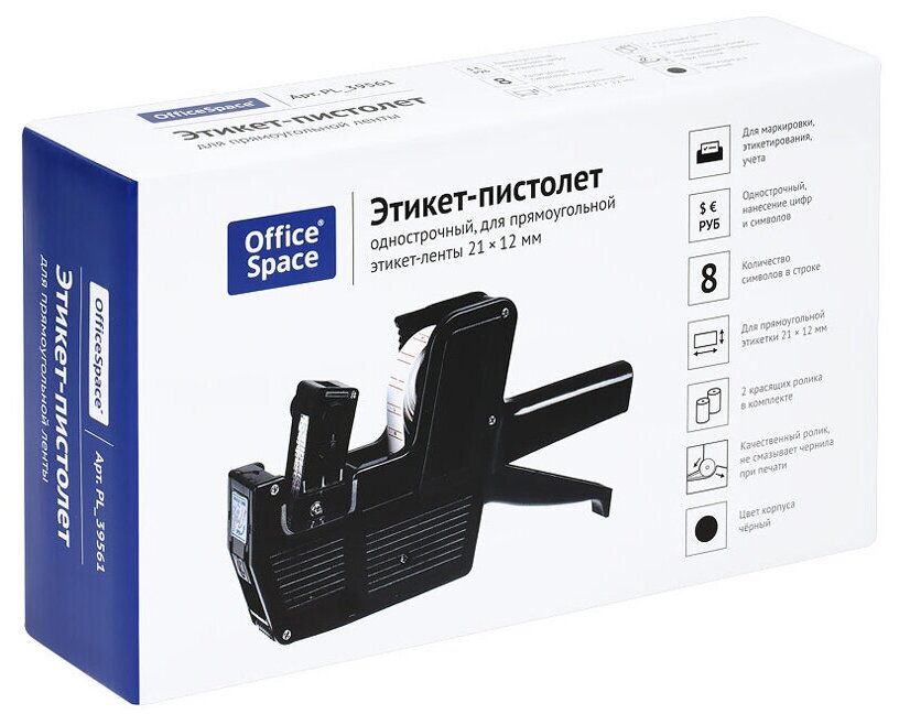 Отзывы на Этикет-пистолет OfficeSpace однострочный, прямоугольная лента, 8 символов, 21×12мм