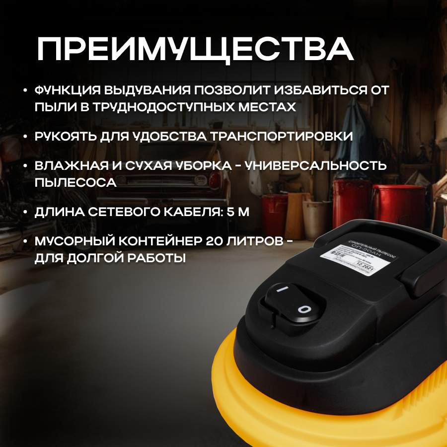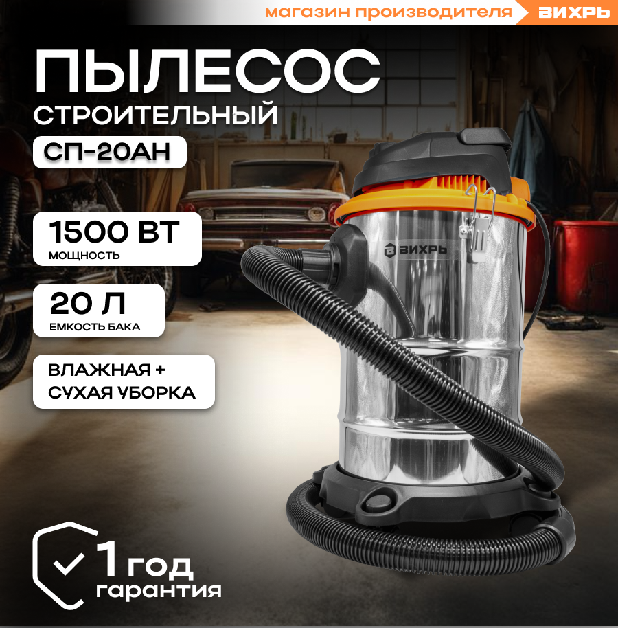 Строительный пылесос СП-20АН Вихрь информация: