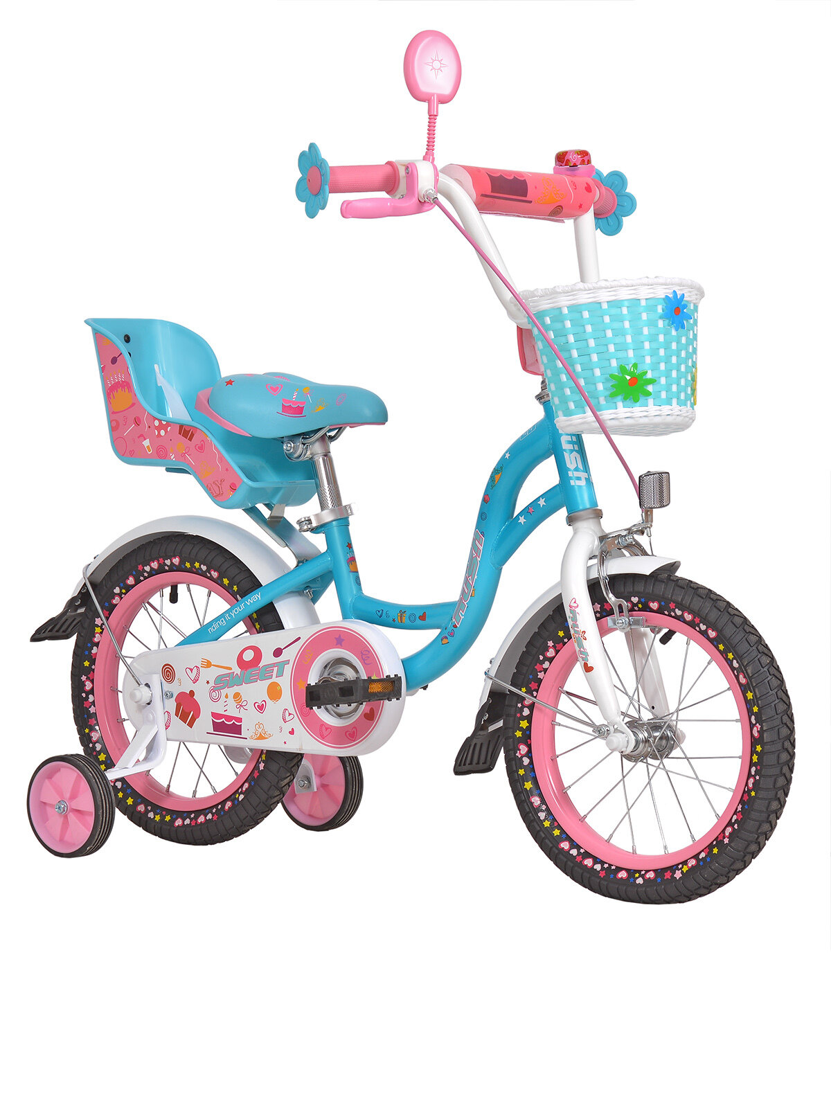 Велосипед двухколесный детский 14" дюймов RUSH HOUR SWEET рост 105-120 см для девочки бирюзовый. Для малышей 3 года, 4 года, 5 лет, велосипед принцесса, велик детский, с багажником, с корзиной,раш информация: