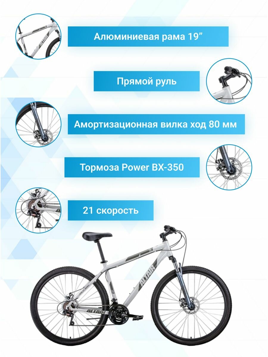 Велосипед 29" Altair AL 29 D серый/чёрный 21 скорость рама 21" 20-21 г RBKT1M39G008 информация: