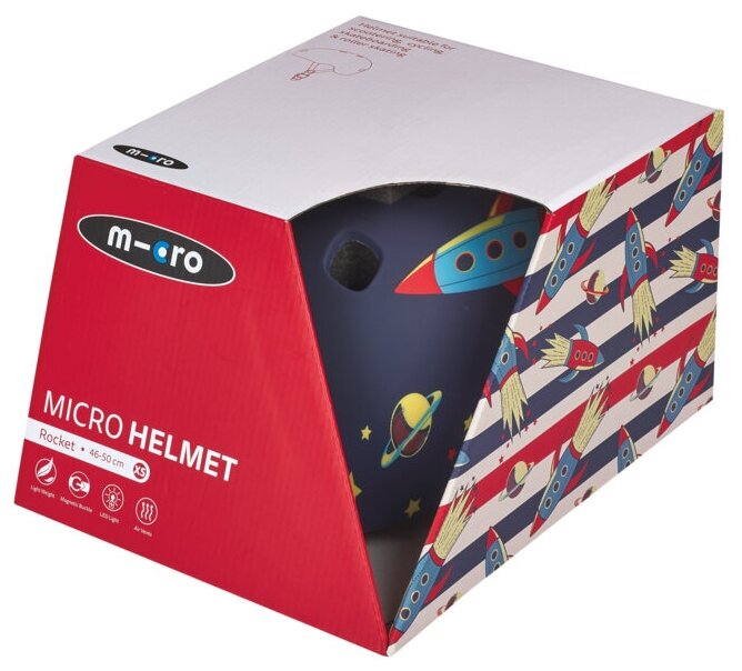 Шлем детский защитный Micro - Ракета с подсветкой LED (XS) BOX информация: