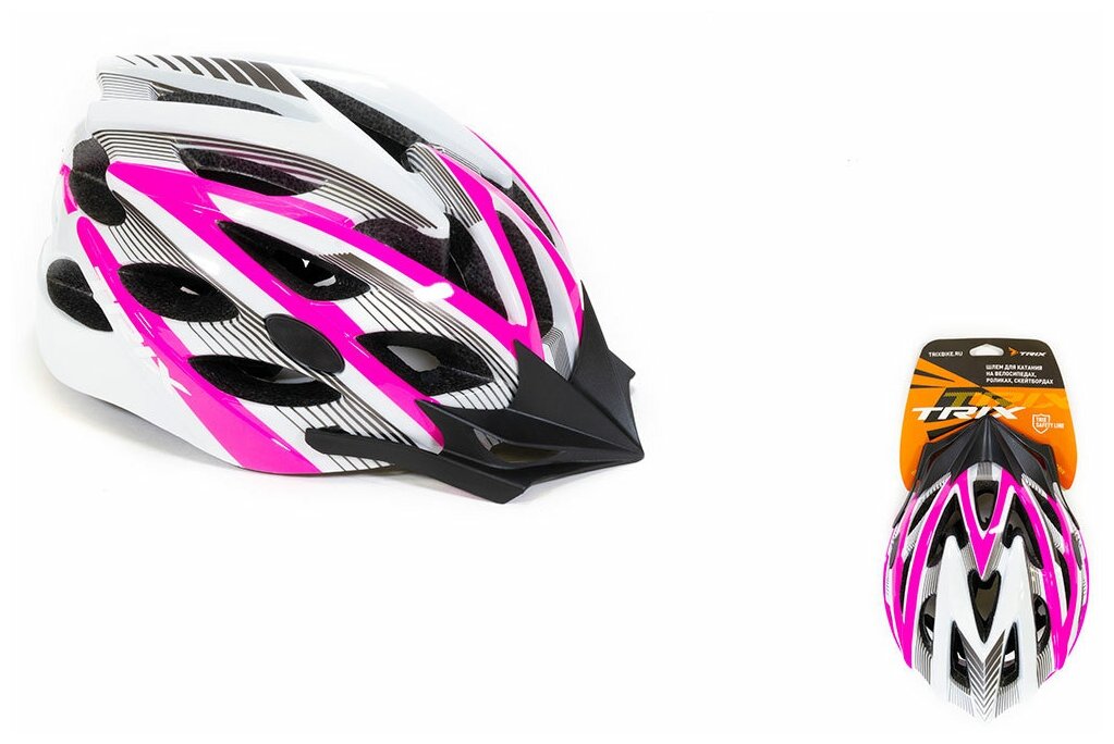 Шлем вело TRIX кросс-кантри 25 отверстий регулировка обхвата M 57-58см In Mold розово-белый информация: