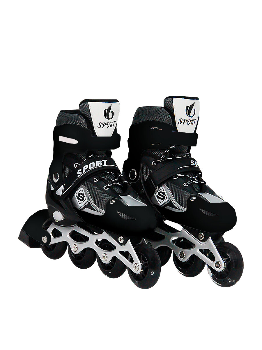 Роликовые коньки раздвижные 35-38, защитный набор в комплекте, ABEC7, черные информация: