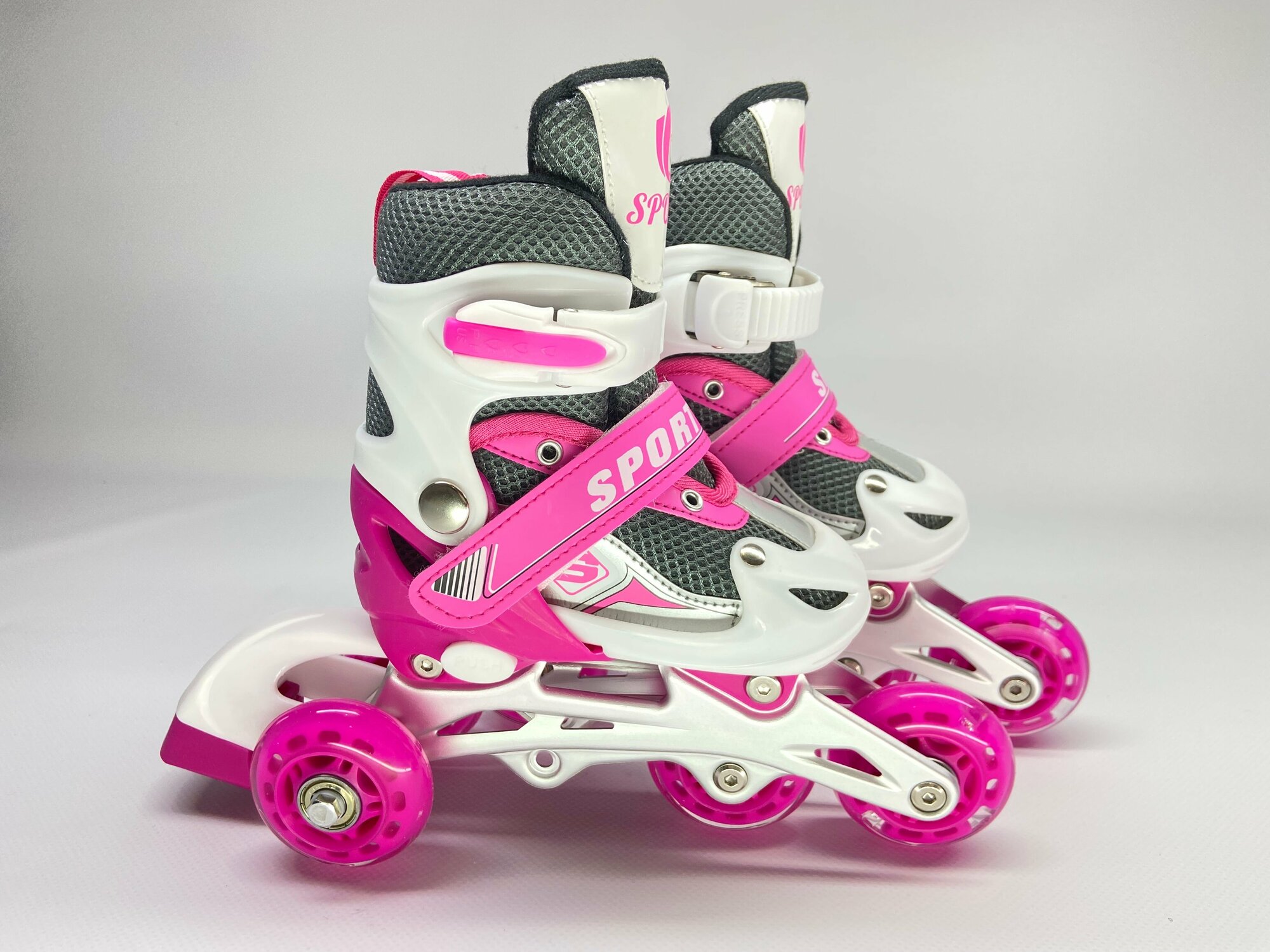 Набор ролики раздвижные+защита размер 26-29 колеса гелевые,алюминевая рама розовые информация: