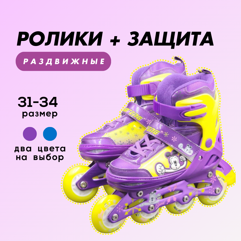 Набор роликов "Раздвижные 35-38" с защитой и шлемом в комплекте, фиолетово-зеленый информация: