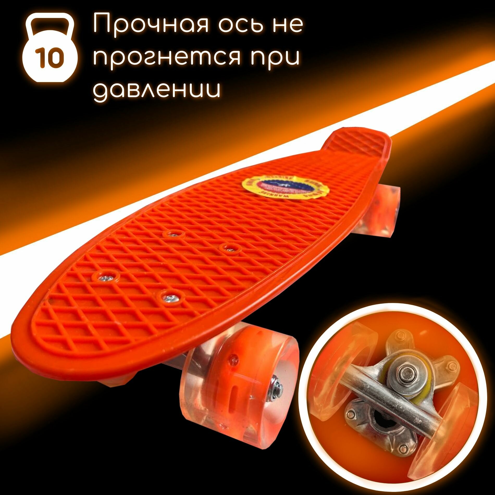 Скейтборд Miksik для девочек и мальчиков, подсветка колес/оранжевый/ информация: