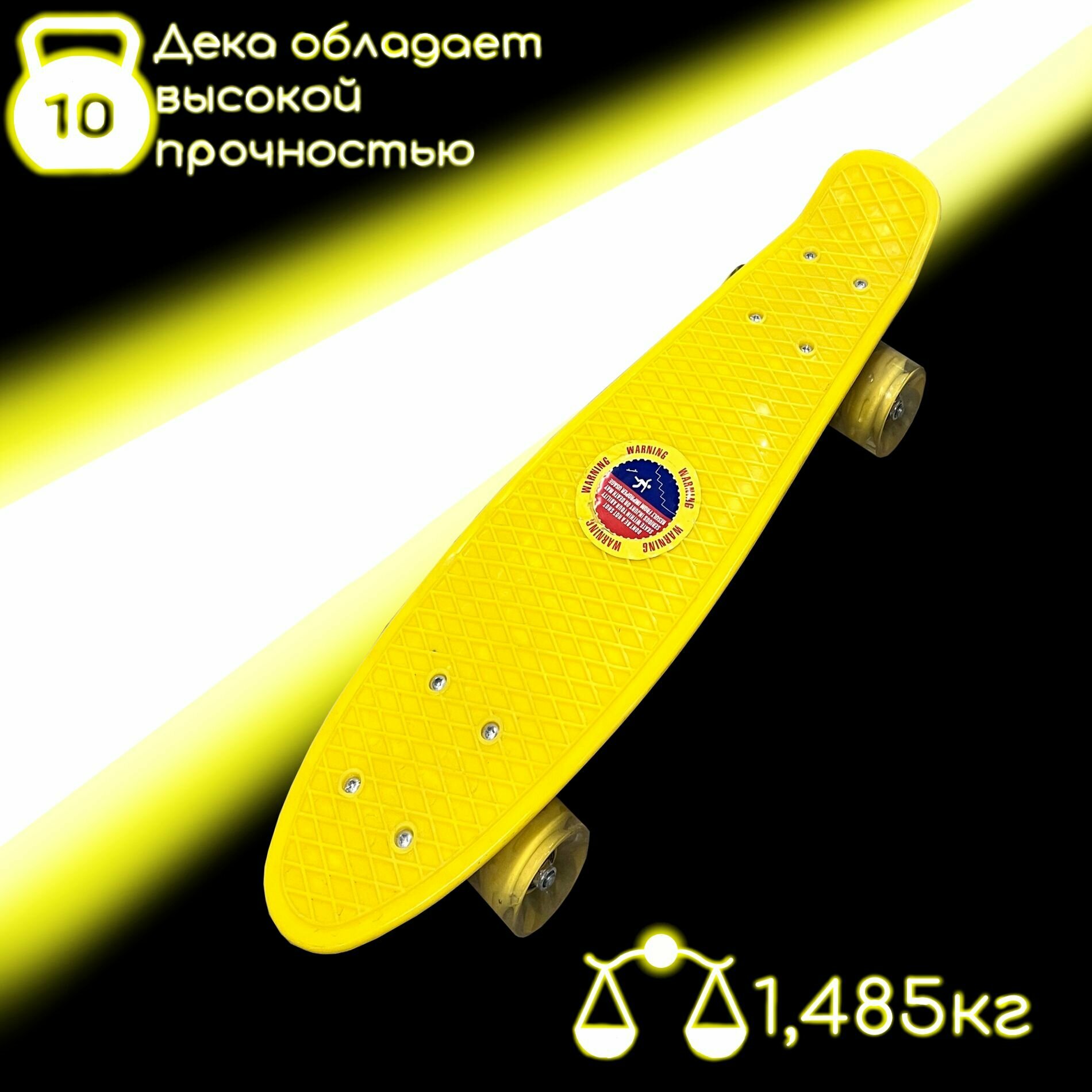 Скейтборд Miksik для девочек и мальчиков, подсветка колес/желтый/ информация: