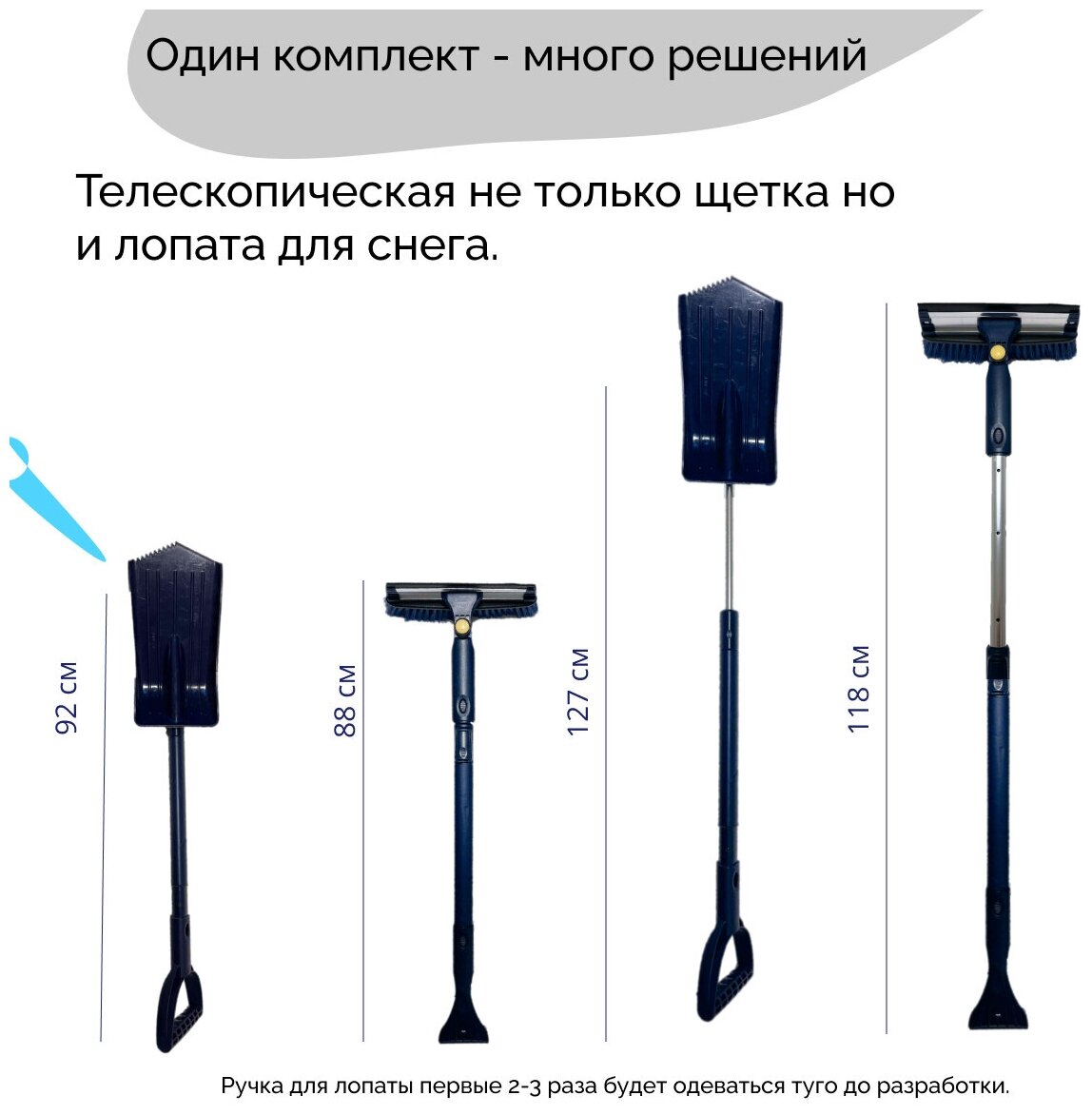 Щетка автомобильная для снега с лопатой, телескопическая со скребком, набор автомобилиста, автобадди информация: