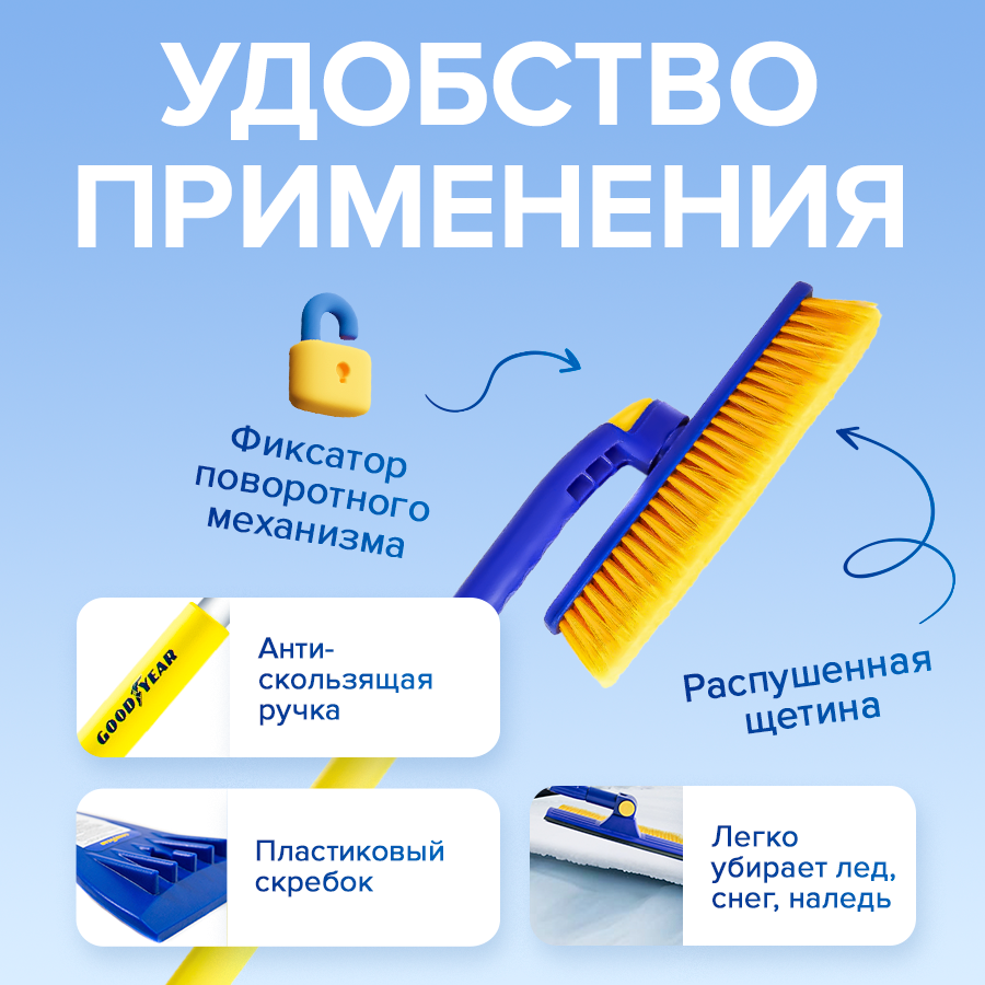 | Особенности | мягкая накладка на рукоятке / поворотная головка / съемный скребок |