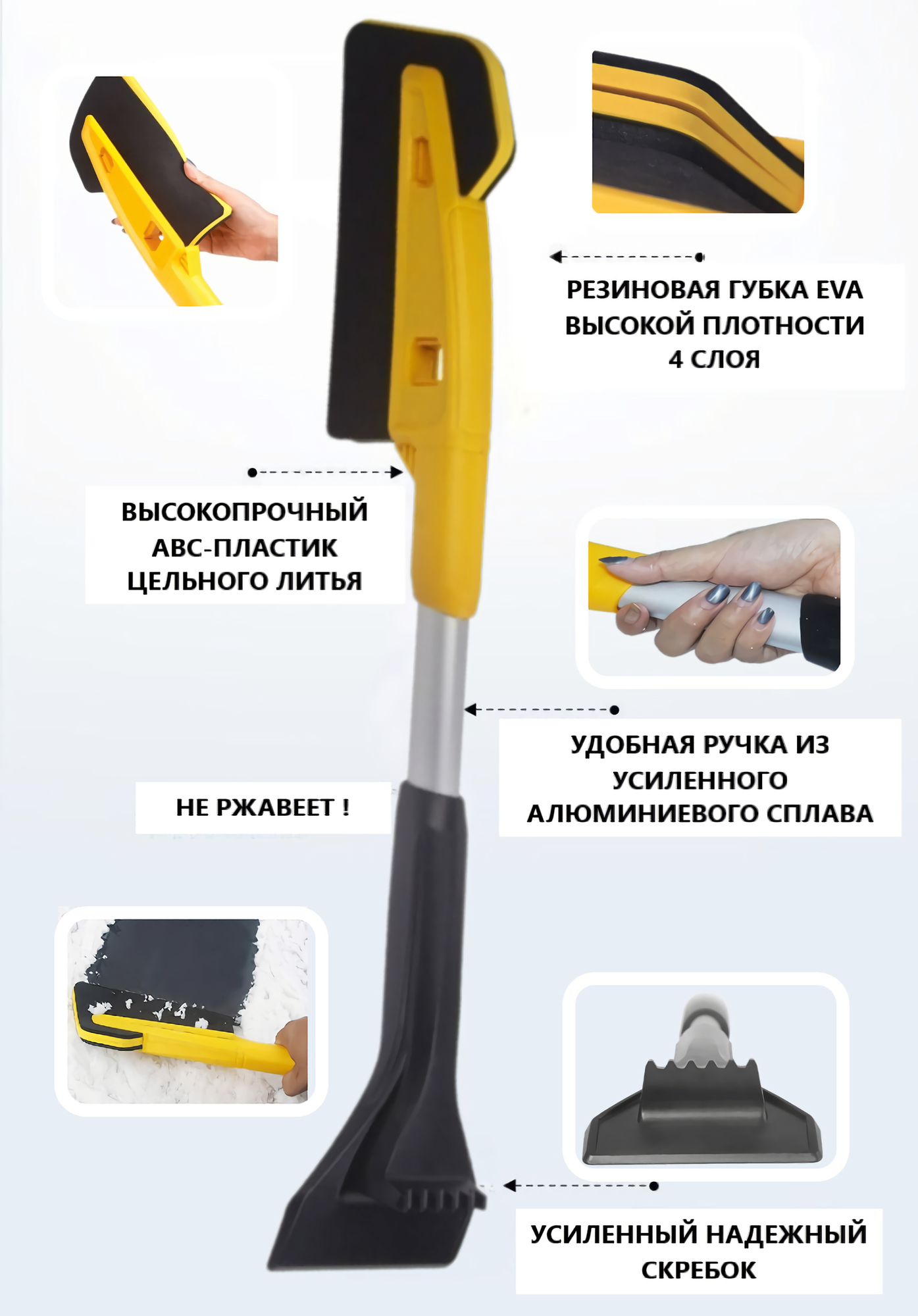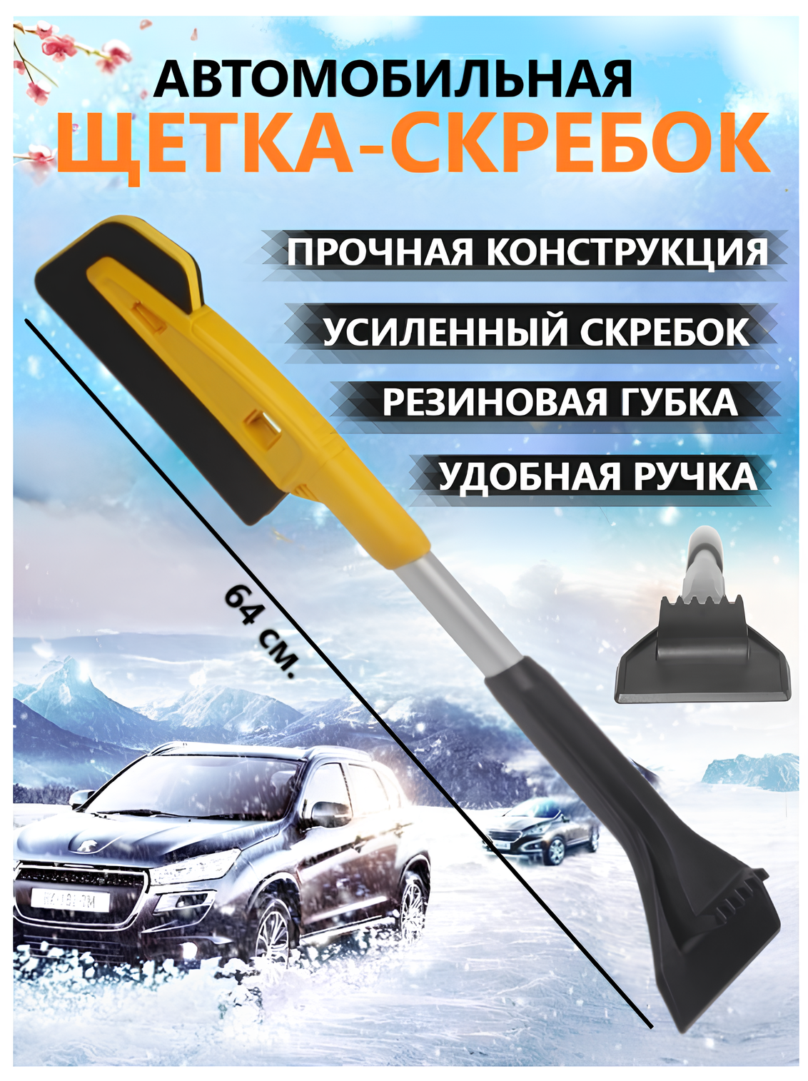 Щетка для машины со скребком от снега и льда информация: