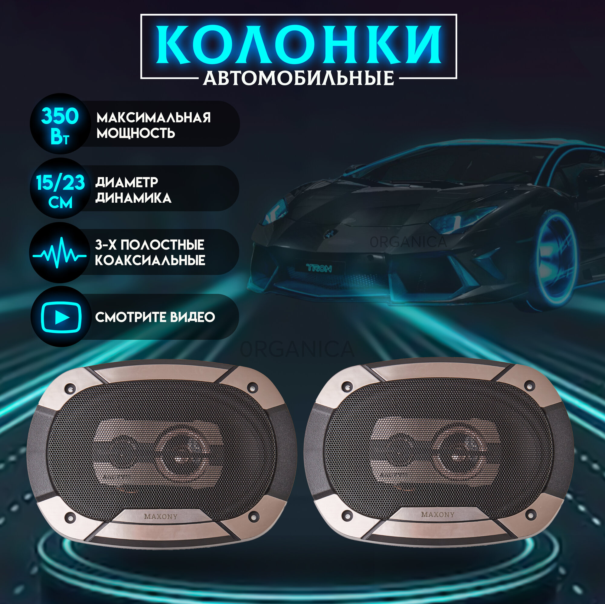 Колонки в машину 6/9 Динамики автомобильные 350BT 3х полоc информация: