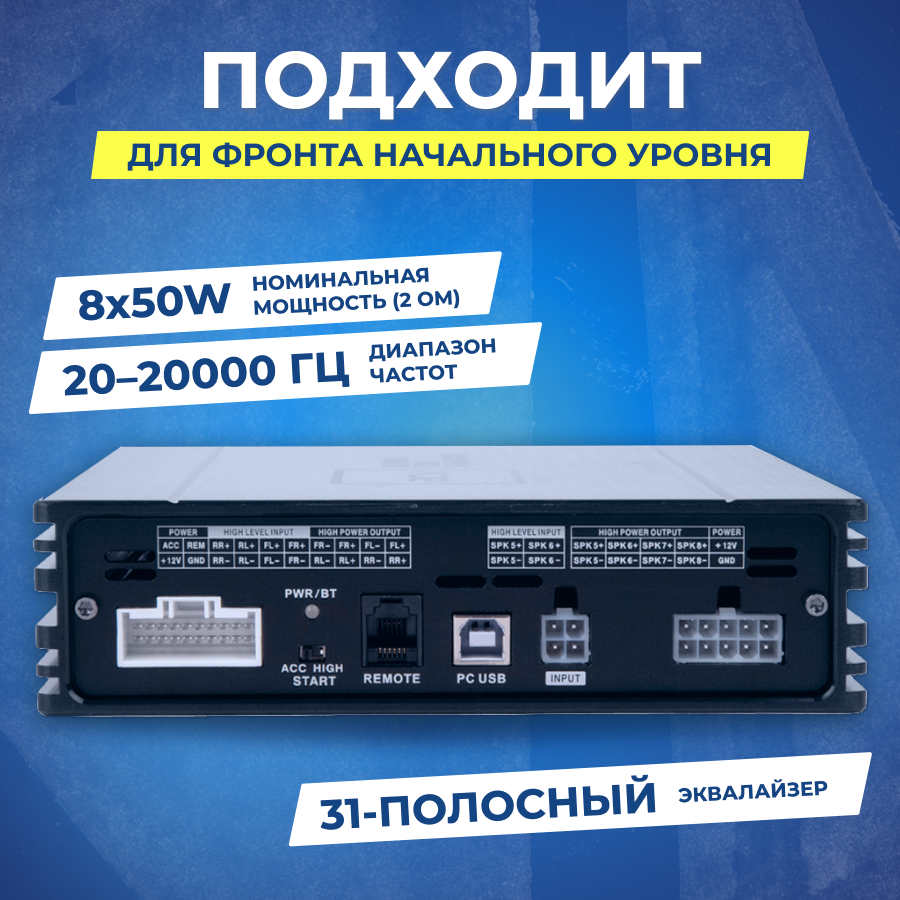 Процессор-усилитель ACV DSP10HD | 10-кан.| 8х50Вт | BT | AptX | HD | OLED пульт информация: