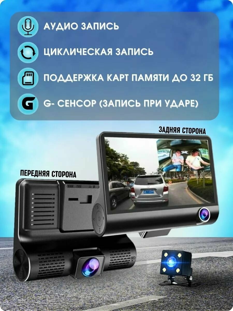Видеорегистратор Bootleg FULL HD 1296P с 2-мя камерами /Дисплей 4``c поддержкой "изображение в изображении" /Объектив 170*/G-сенсор