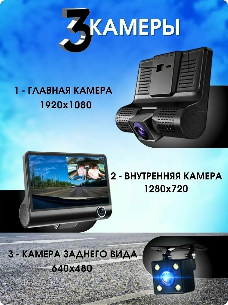 Видеорегистратор зеркало с 3-мя камерами для автомобиля