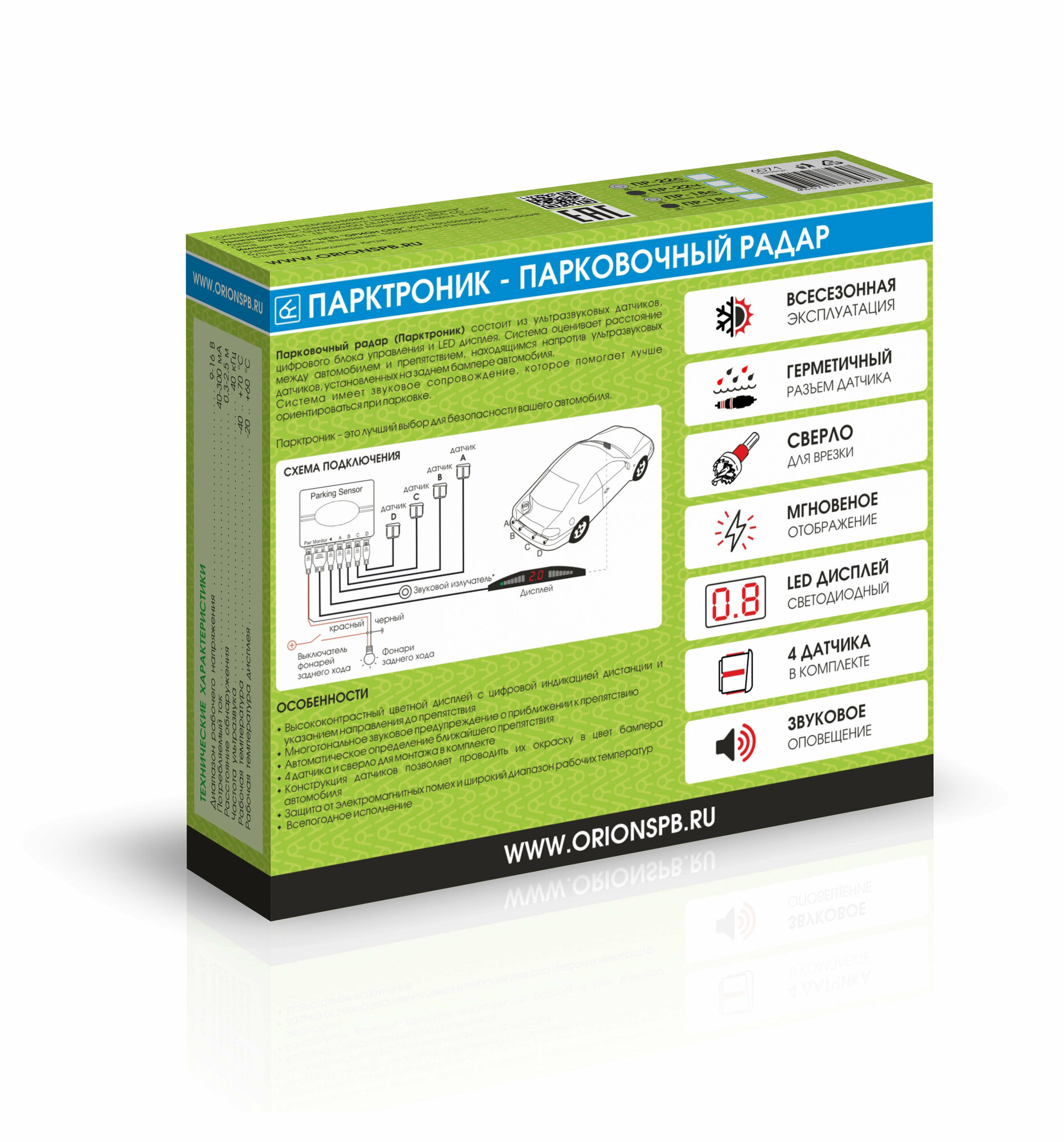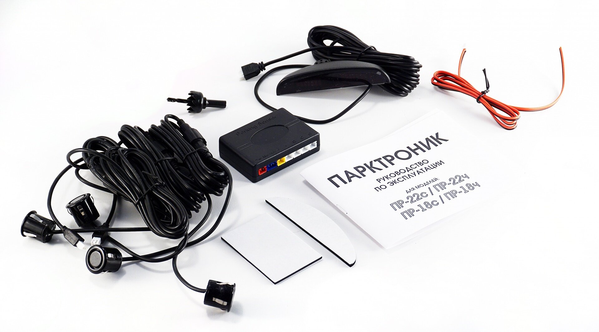 Парктроник, сверло в комплекте, Вымпел ПР-18ч (4 датчика 18мм, свет-звуковая индикация, обнаружение от 30 до 250см) информация: