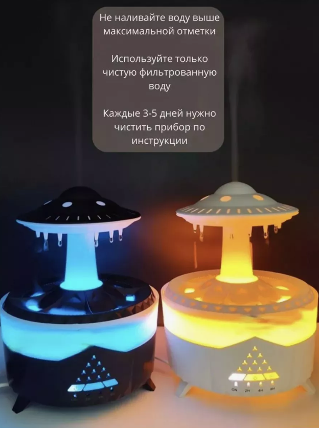 Увлажнитель воздуха гриб для дома ультразвуковой, аромадиффузор ночник настольный с дождевым эффектом