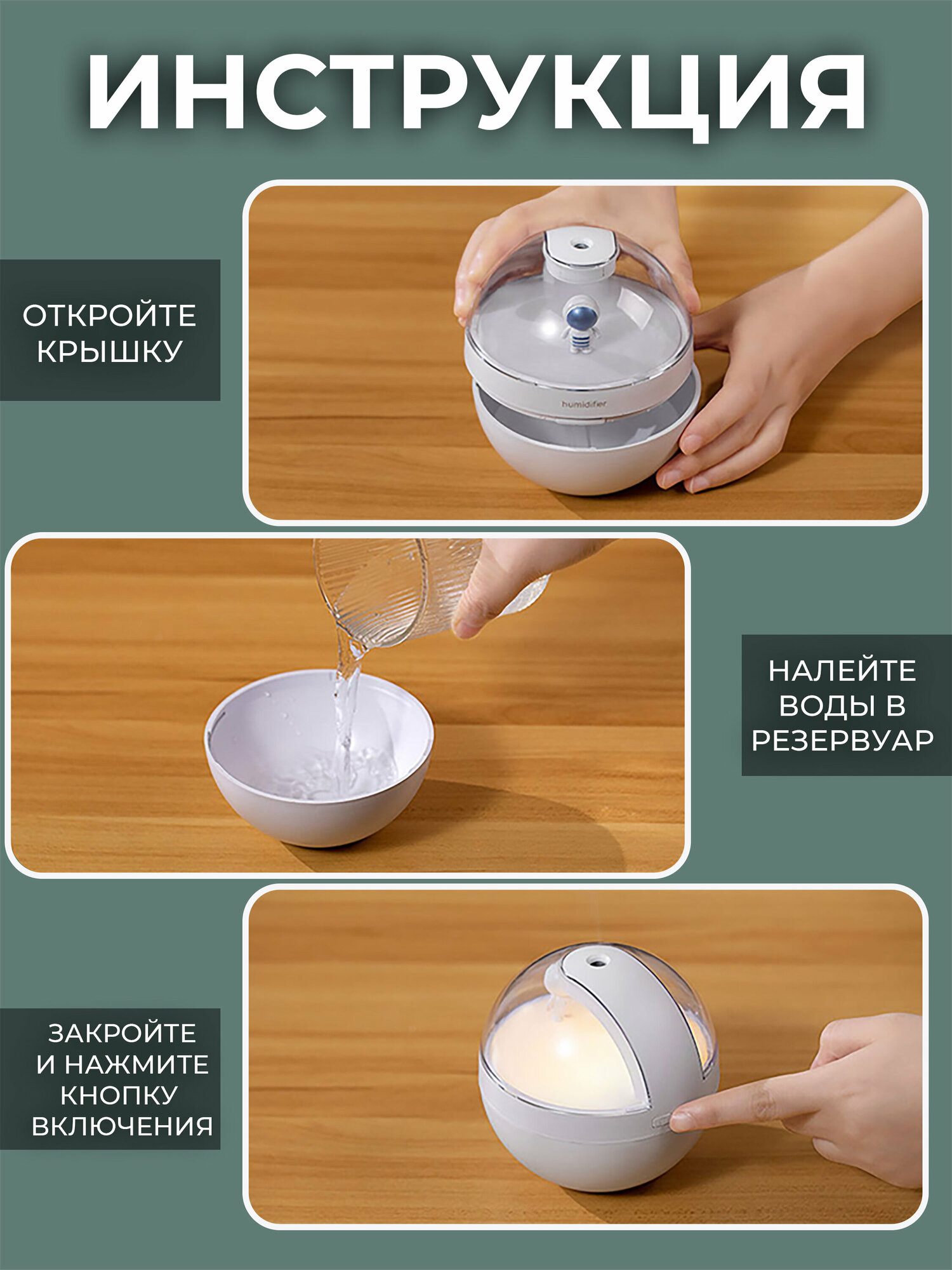 Отзывы на Увлажнитель-ароматизатор воздуха ночник светильник космонавт, белый