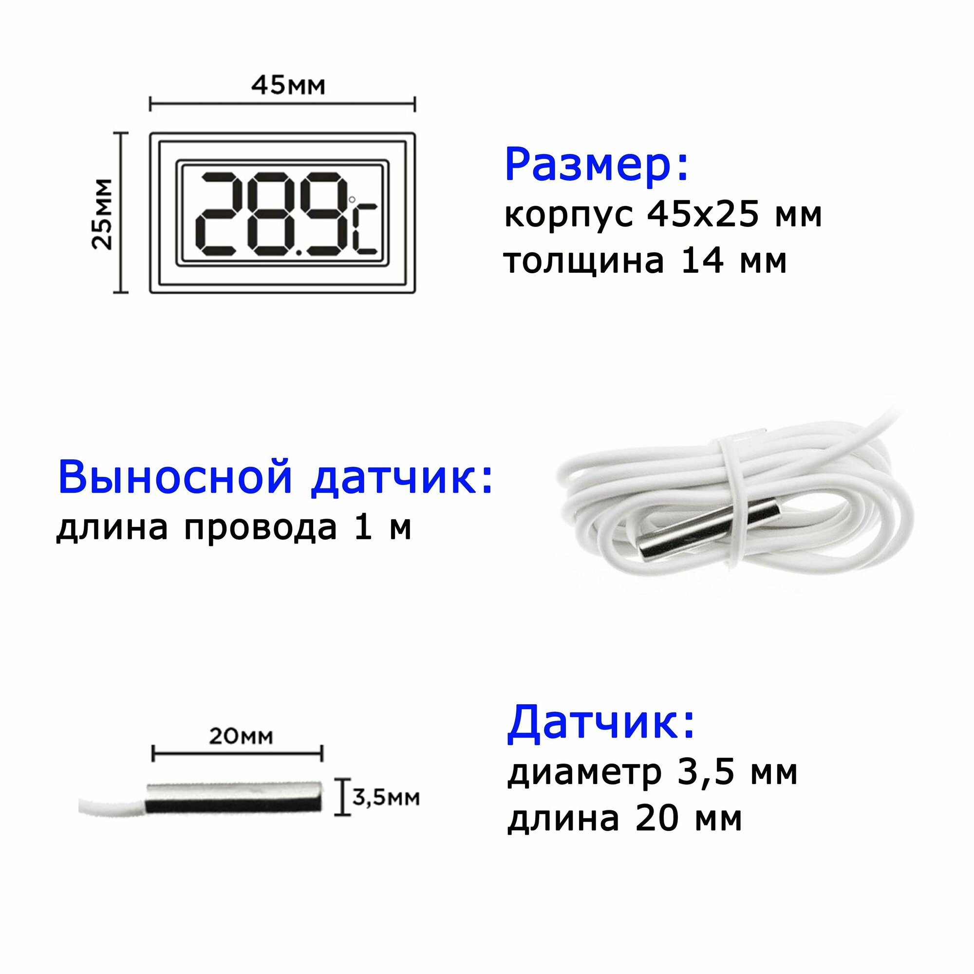 Цифровой термометр TPM-10 (-50 до +110 С) с выносным датчиком 1 м, белый информация: