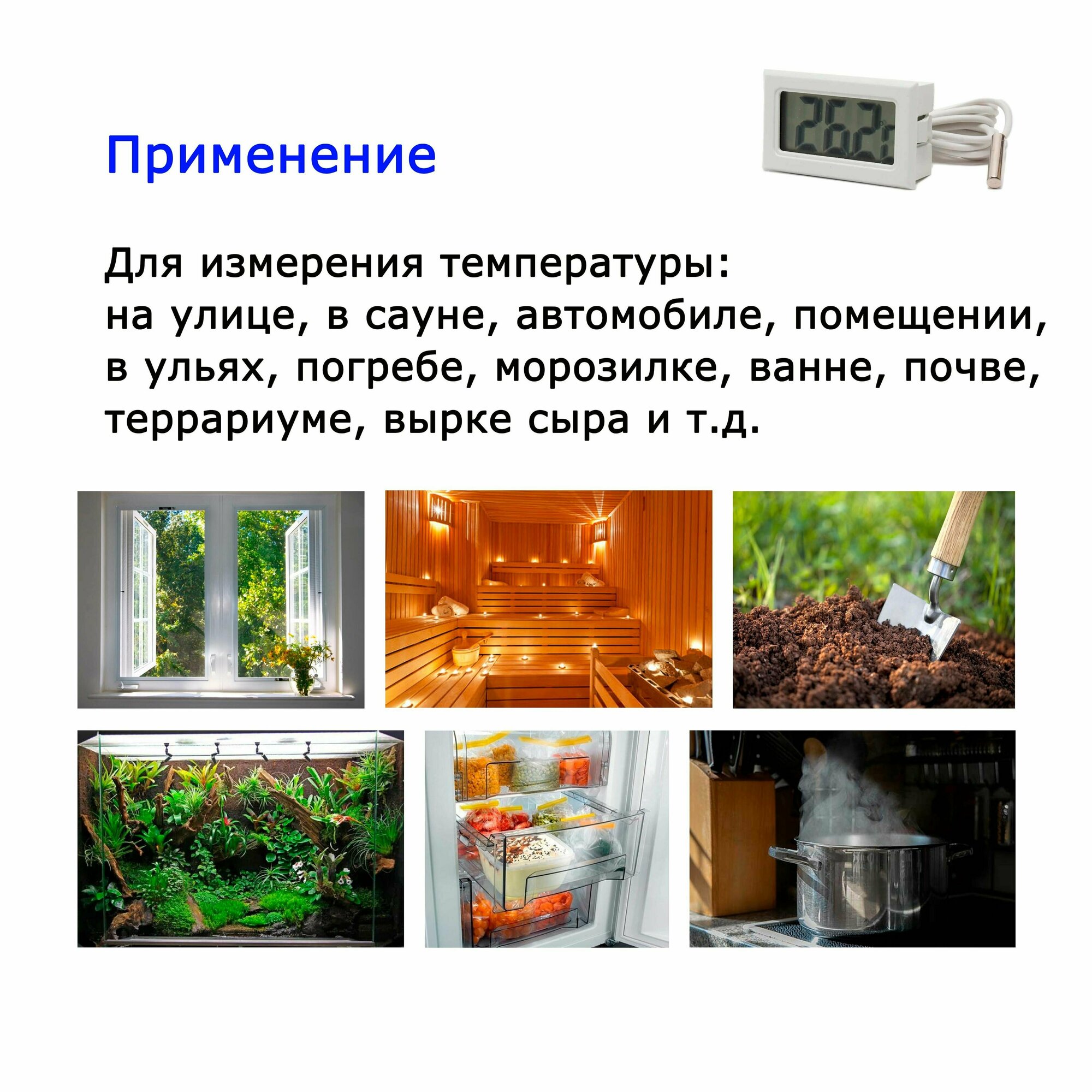 Термометр цифровой электронный от -50°C до +110°C, с водонепроницаемым зондом длиной 1 метр
