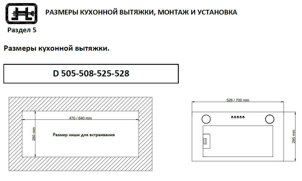 Kanzler полновстраиваемая вытяжка D 528 W информация: