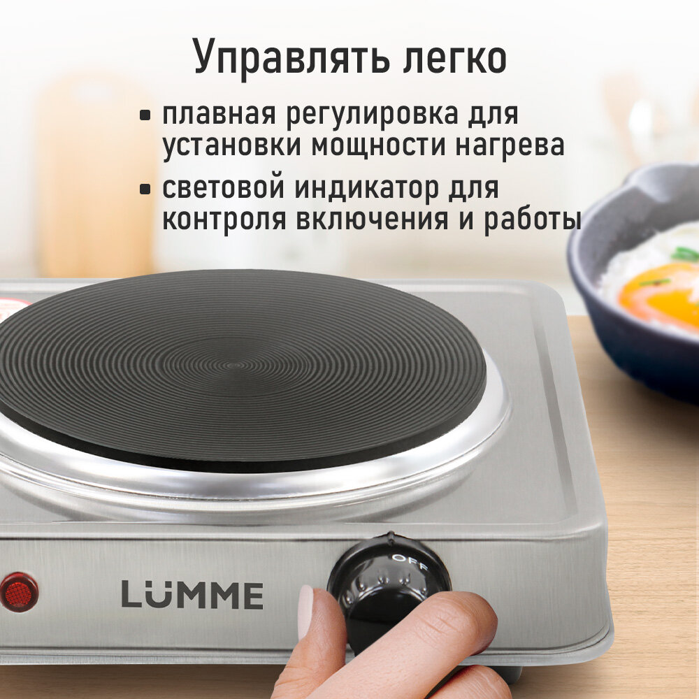 Электроплита LUMME "LU-3637", чугун, нержавеющая сталь, дисковая, 1 конфорка