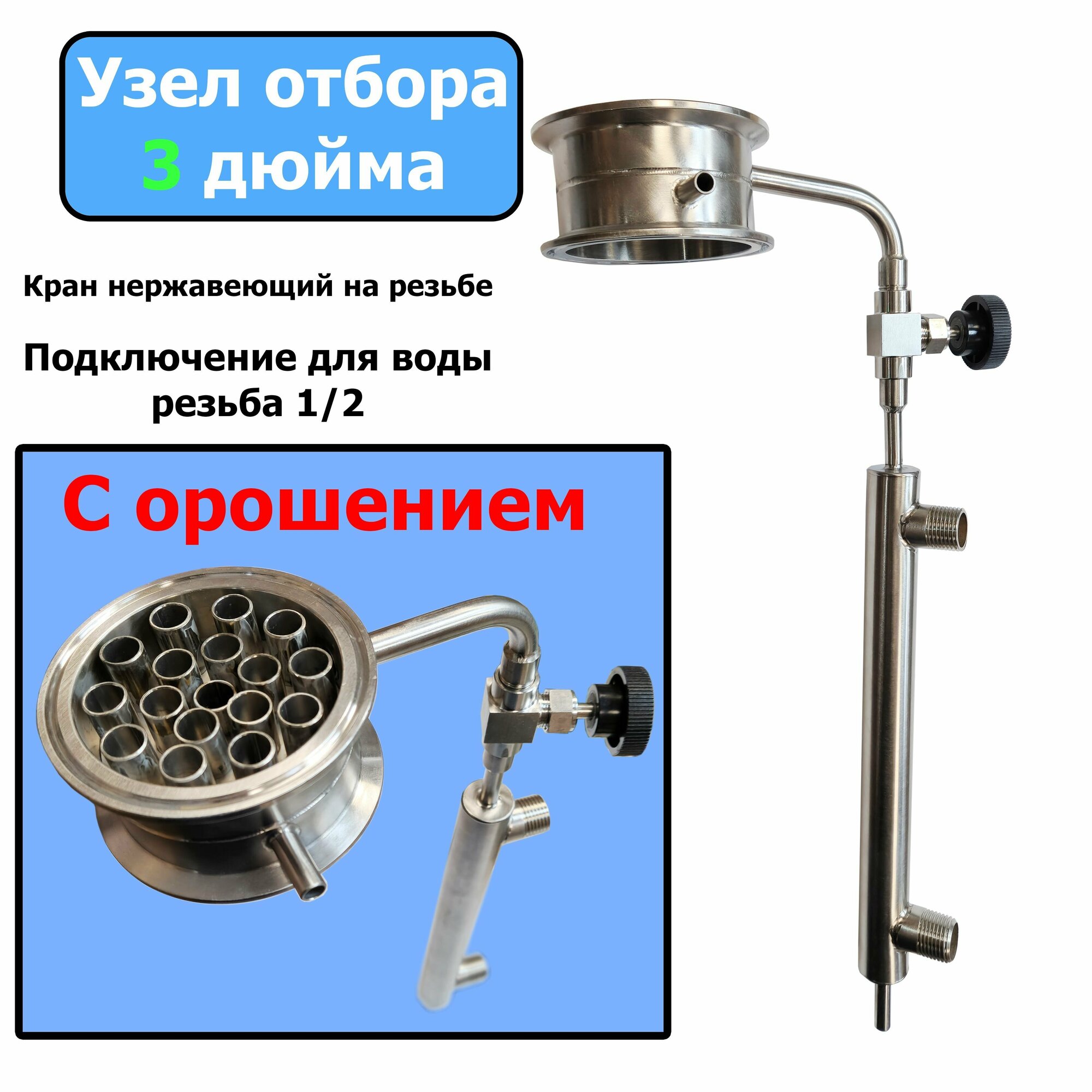 Узел отбора по жидкости 3 дюйма (с орошением и гильзой) с доохладителем и нержавеющим игольчатым краном (Резьба 1/2) информация: