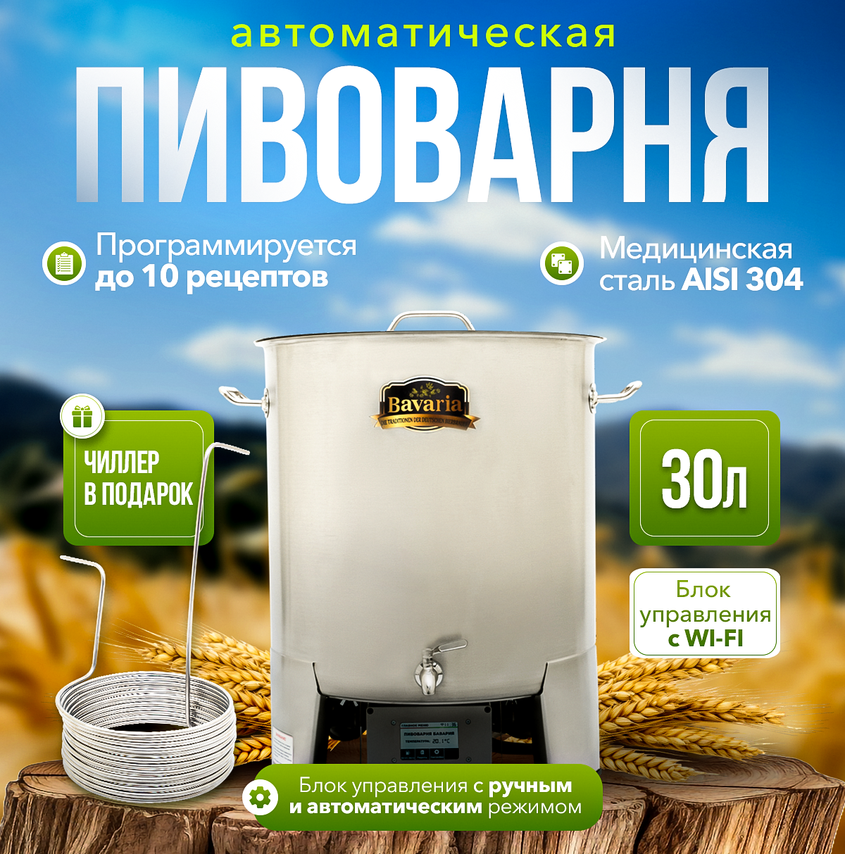 Автоматическая домашняя пивоварня Bavaria 30 литров с WiFi блоком+ чиллер в подарок! информация: