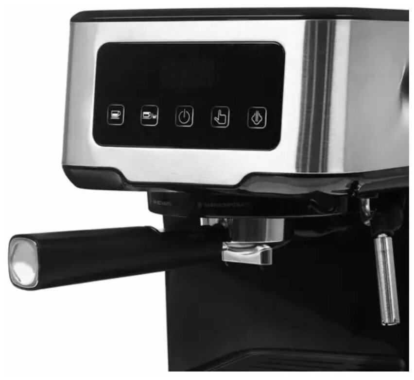Кофеварка рожковая DEXP/капучинатор/дисплей/1,5 л/1100 Вт/для молотого кофе/подогрев чашек/серый информация: