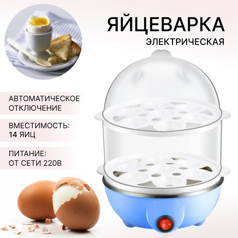 10 цен на Яйцеварка на 14 яиц, цвет голубой, 2 яруса, питание от сети 220В