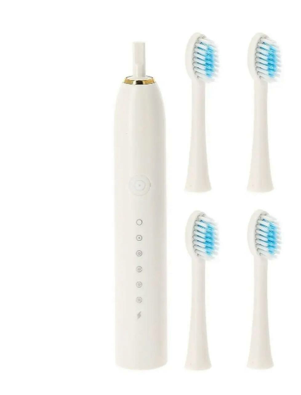 Ультразвуковая зубная щетка 30 дней без подзарядки, 6 режимов, 4 насадки белый информация: