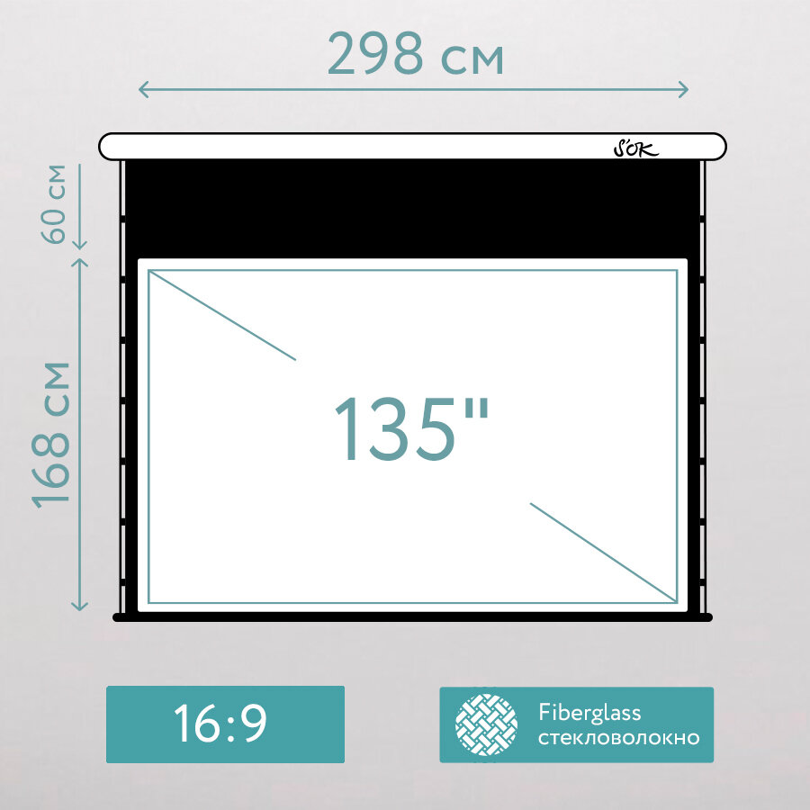 Экран S'OK SCPSMT-298x168ED60 Pro 135'' моторизованный с боковым натяжением, White PVC информация: