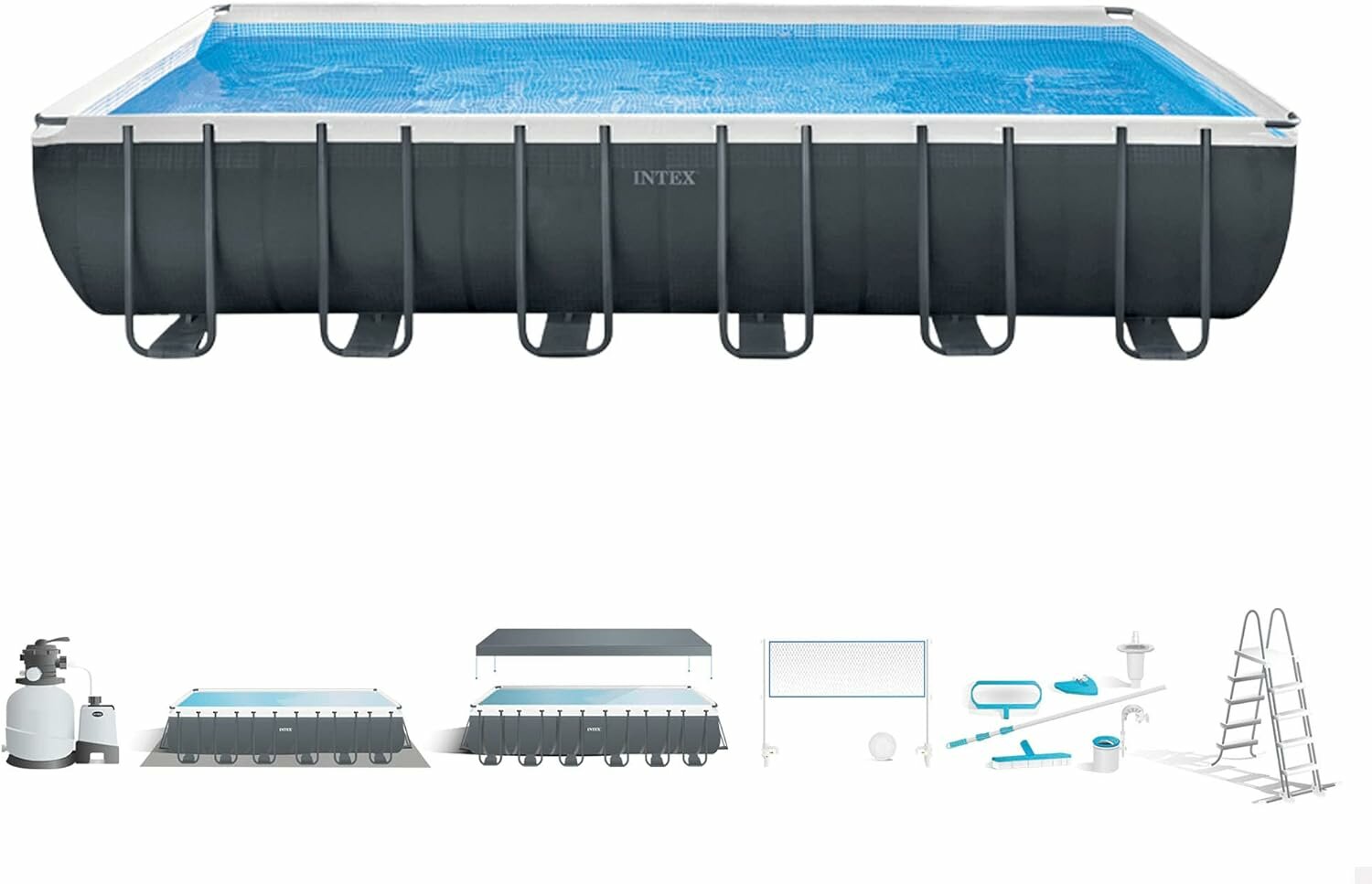 Отзывы на Intex 26368 (732х366х132см лестница,песчаный фильтр+хлоргенератор,тент,подложка,волейбольная сетка, набор для чистки) Каркасный бассейн Ultra Frame XTR