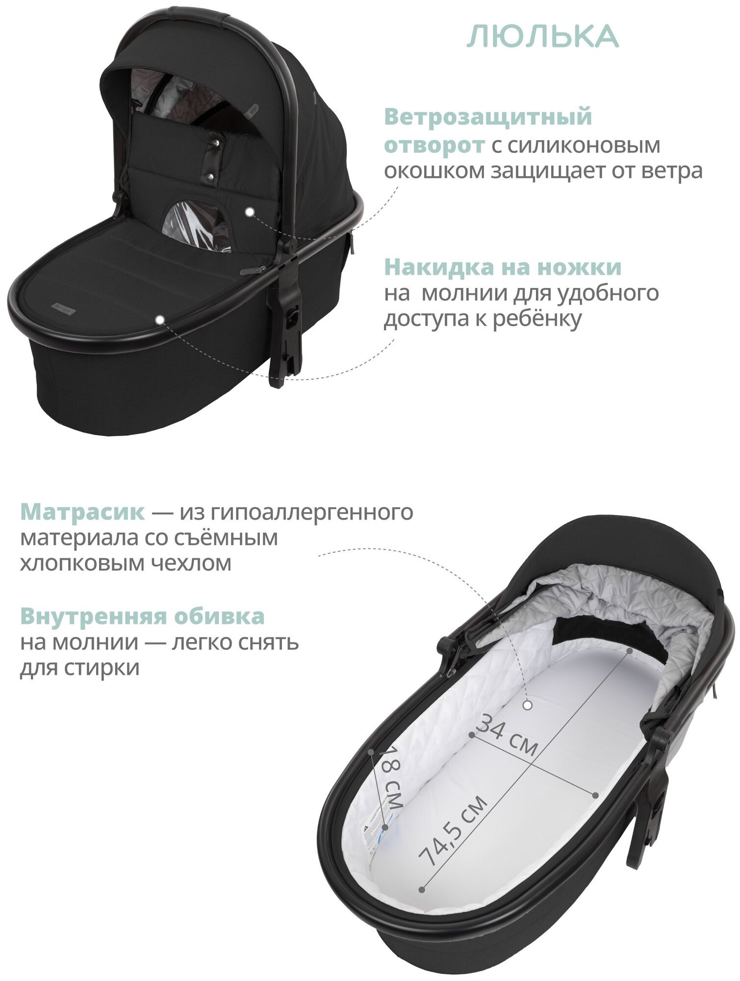 Коляска люлька универсальная INDIGO DESIRE 3в1 прогулочная всесезонная, черный информация: