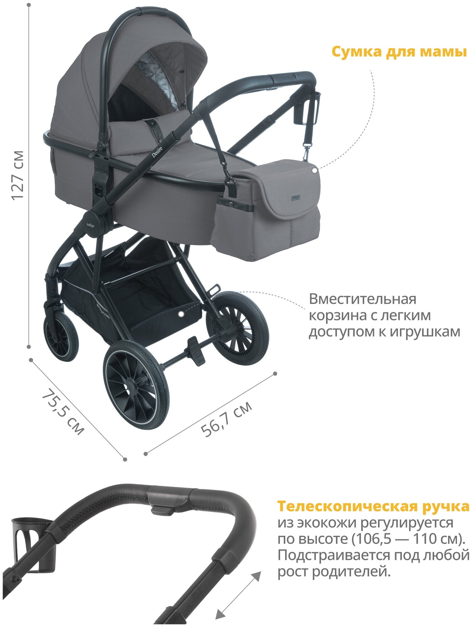 Коляска люлька универсальная INDIGO DESIRE 3в1 прогулочная всесезонная, графит информация: