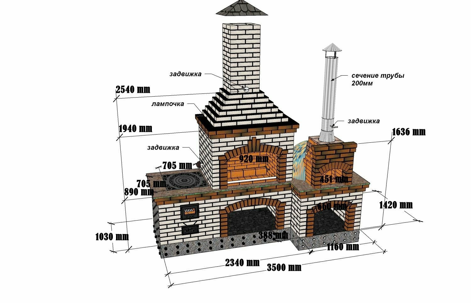 Проект "Кузя" барбекю комплекс с помпейской печкой и под печью под казан информация: