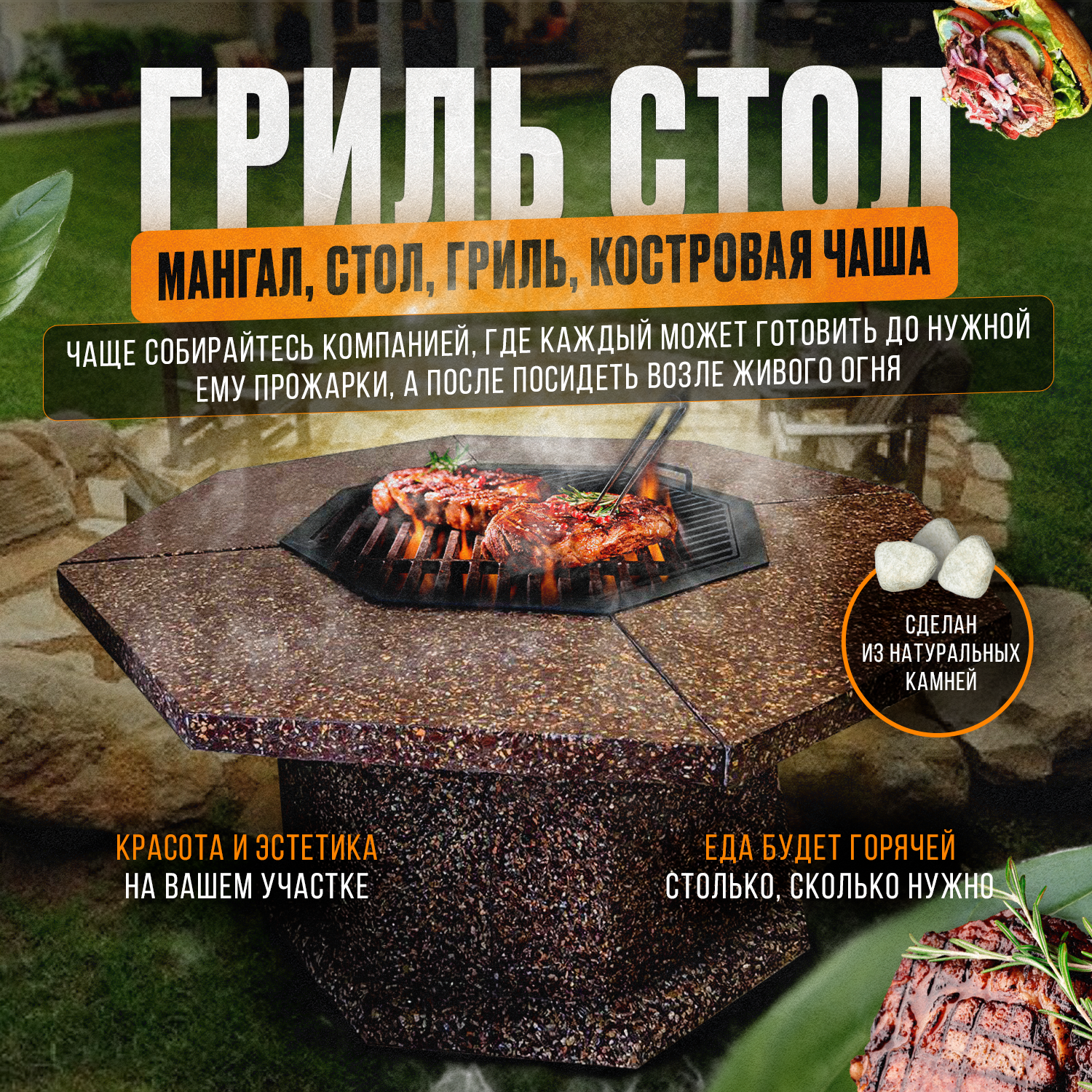 10 цен на Гриль стол 1600х1700 мм с мангалом, фактура Песчаная буря