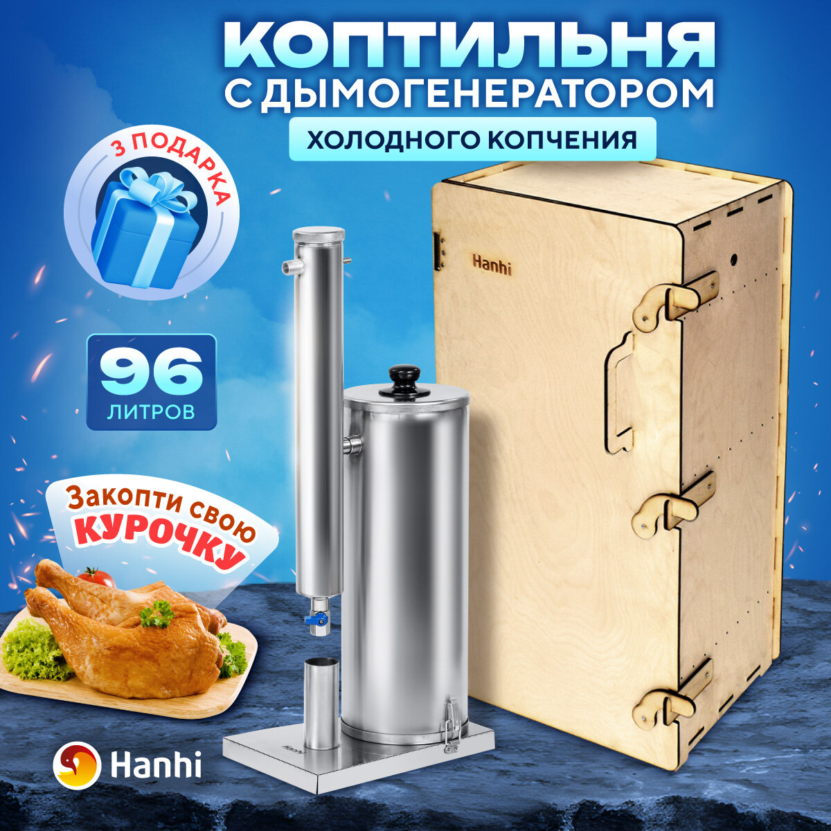 Коптильня домашняя с дымогенератором Hanhi 4 для горячего и холодного копчения 20 л / Коптилка Ханхи нержавейка для дома и дачи