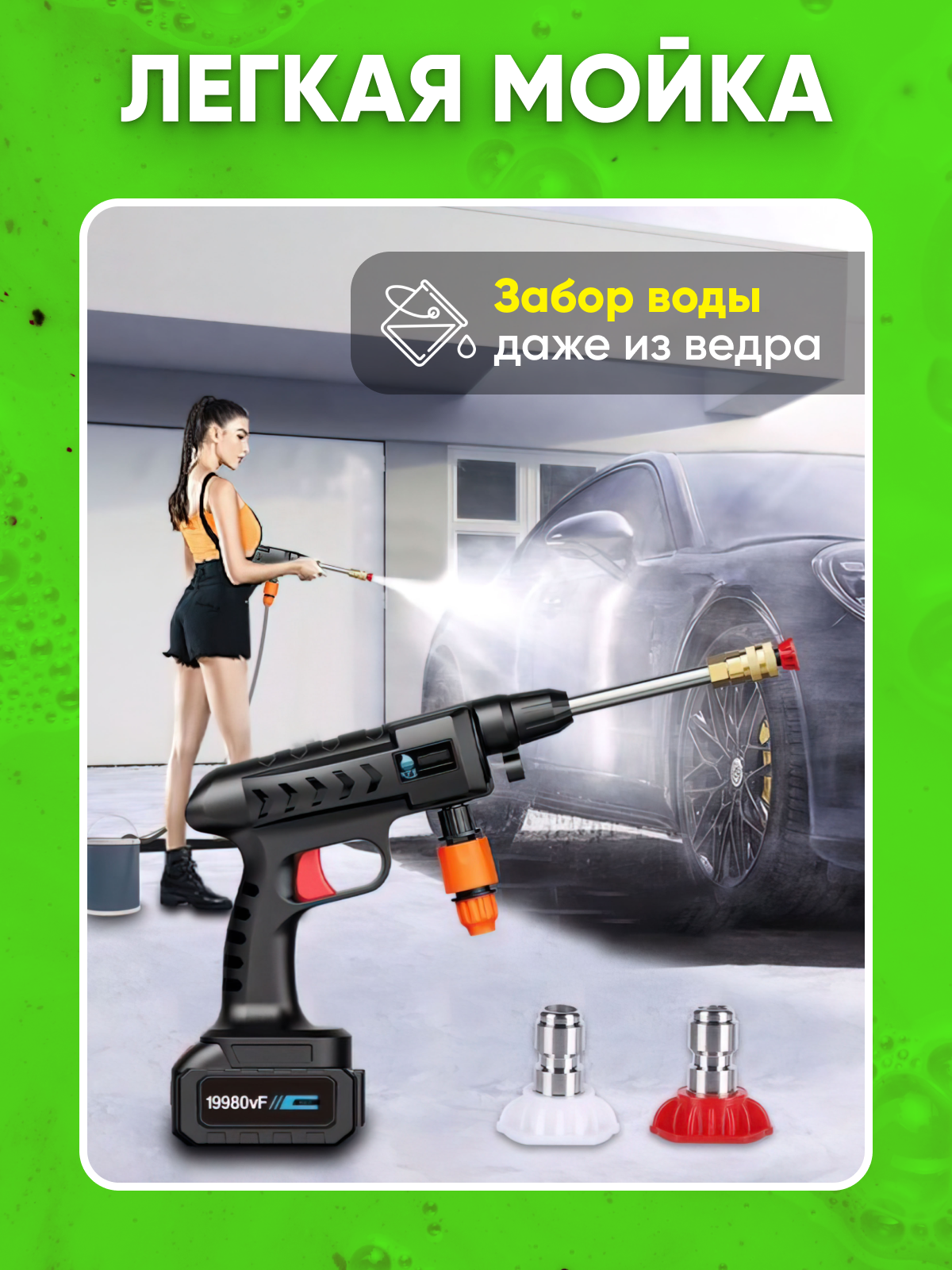 Портативный пистолет для мойки автомобиля, 3000 мАч, 60 бар информация: