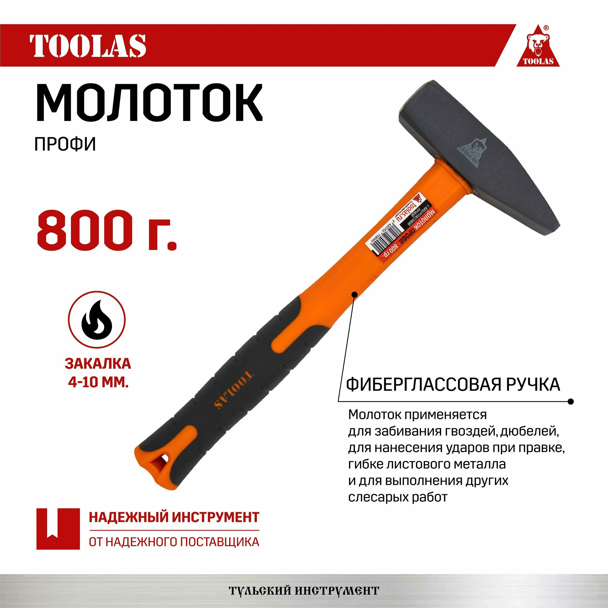 Молоток с фиберглассовой ручкой 800 гр информация: