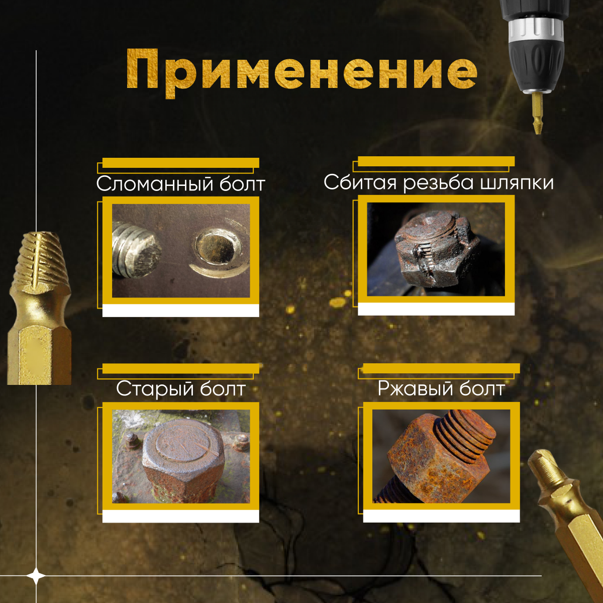 Отзывы на Экстрактор для болтов, набор для выкручивания сломанных саморезов, для извлечения сорванных шурупов 4шт