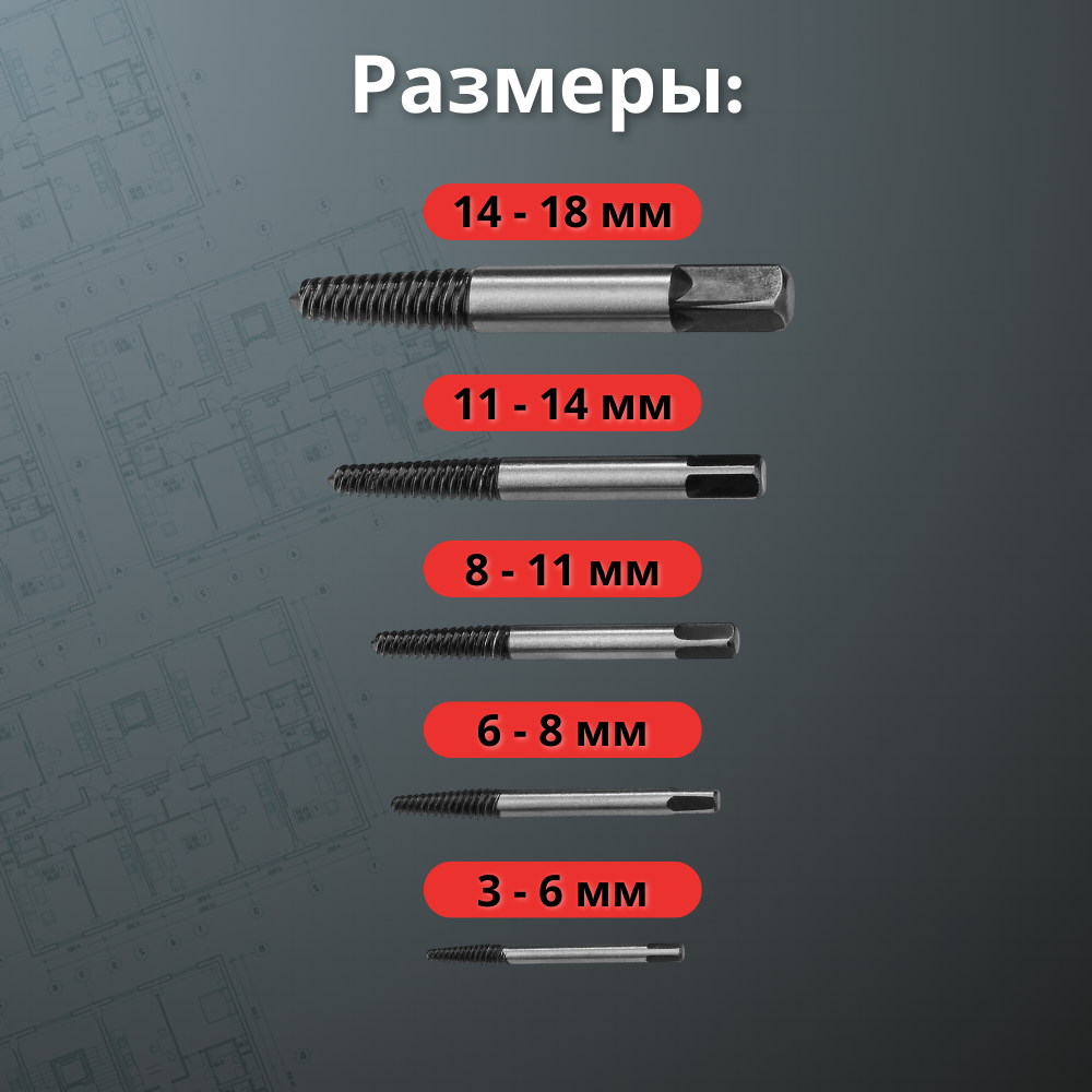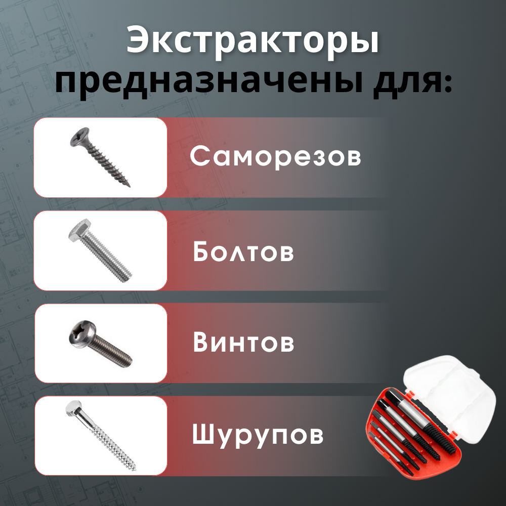 Экстракторы для болтов и саморезов HOMEGURU с кейсом, 5 штук информация: